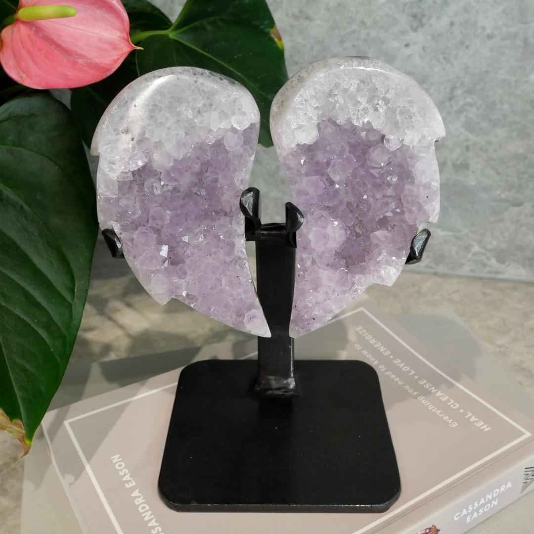 What a Stunning show piece! These beautiful hand carved and polished Angel Wings come complete with a metal stand for displaying. Wings can be removed from the stand, they are not permanently fixed to the stand. The quality & Craftsmanship is amazing. They are direct from Brazil, where the best Amethyst is sourced from.
