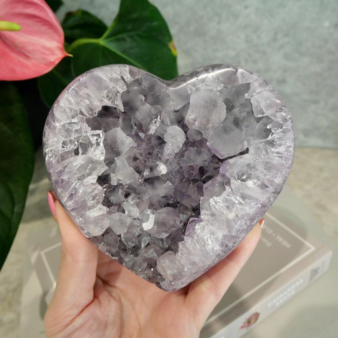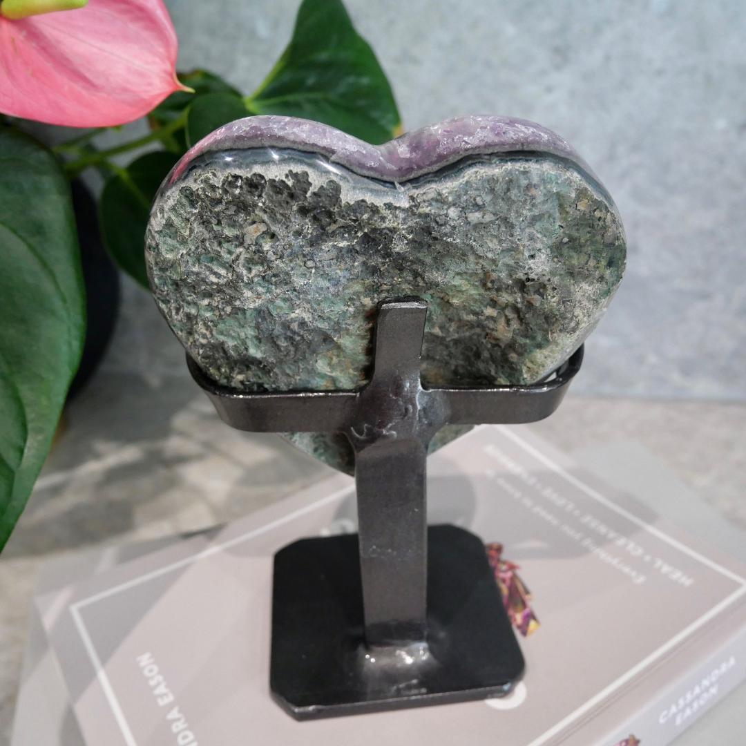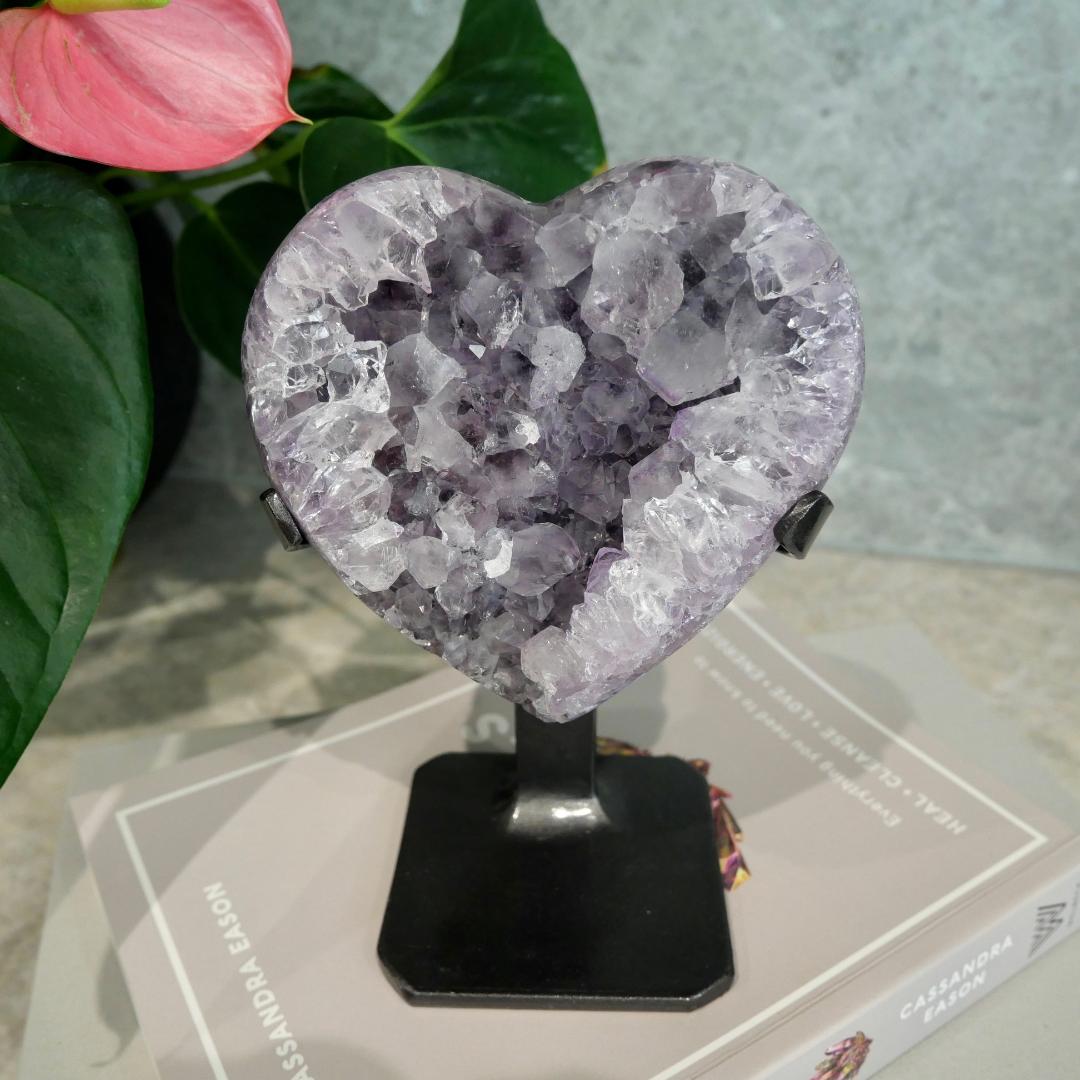 What a Stunning show piece! These beautiful hand carved and polished Heart come complete with a metal stand for displaying. Heart can be removed from the stand, it is not permanently fixed to the stand. The quality & Craftsmanship is amazing. They are direct from Brazil, where the best Amethyst is sourced from.