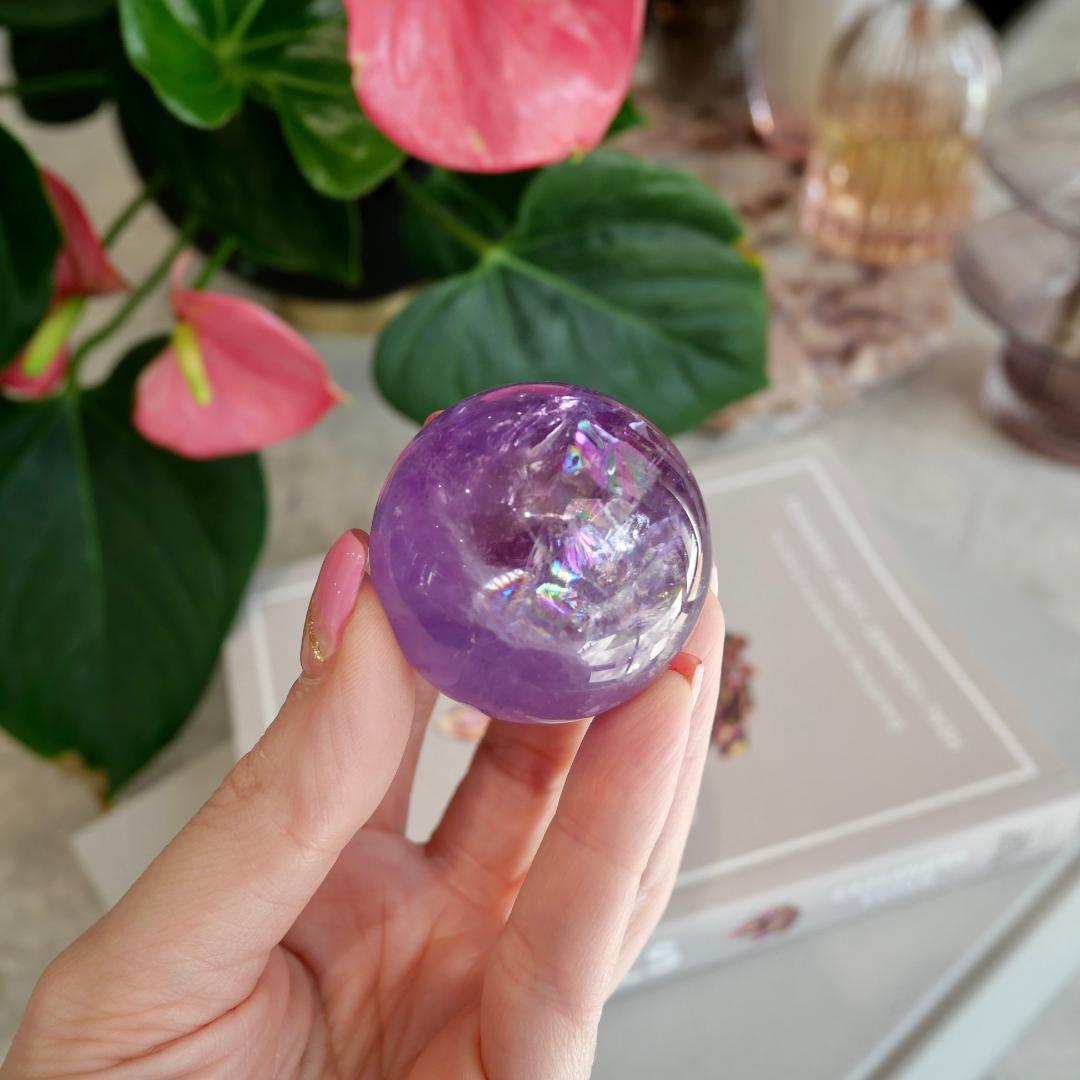 Please note that crystals may have fracture cracks, caves or small holes. They are natural stone from mother nature and are perfectly imperfect. No two crystals will ever be the same. You will receive the exact Amethyst Sphere as pictured.
