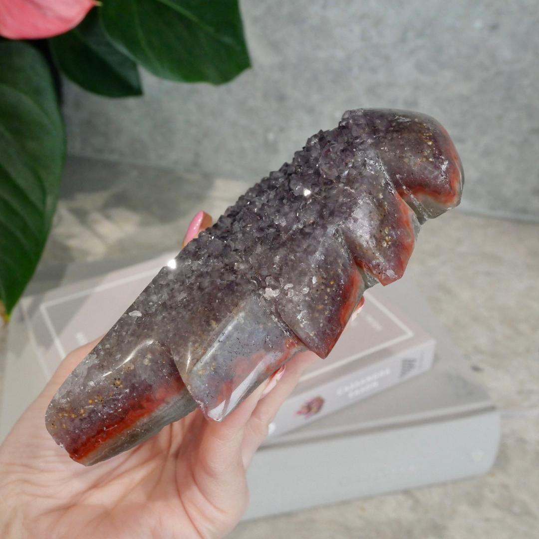 Amethyst is the stone of calm & tranquility. It aids in stress relief, balances mood swings, dispels fear, anxiety, anger & rage. Great crystal those suffering from sadness & grief. These wings have a beautiful banding of Jasper. Jasper is known as the stone of Nurturing. It provides us with support and protection in times of stress. Dispelling negative energies and encouraging us to tackle our problems.