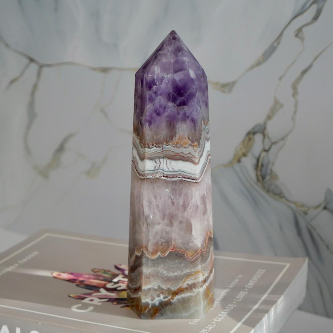 Amethyst with Mexican Lace Agate Tower No 122