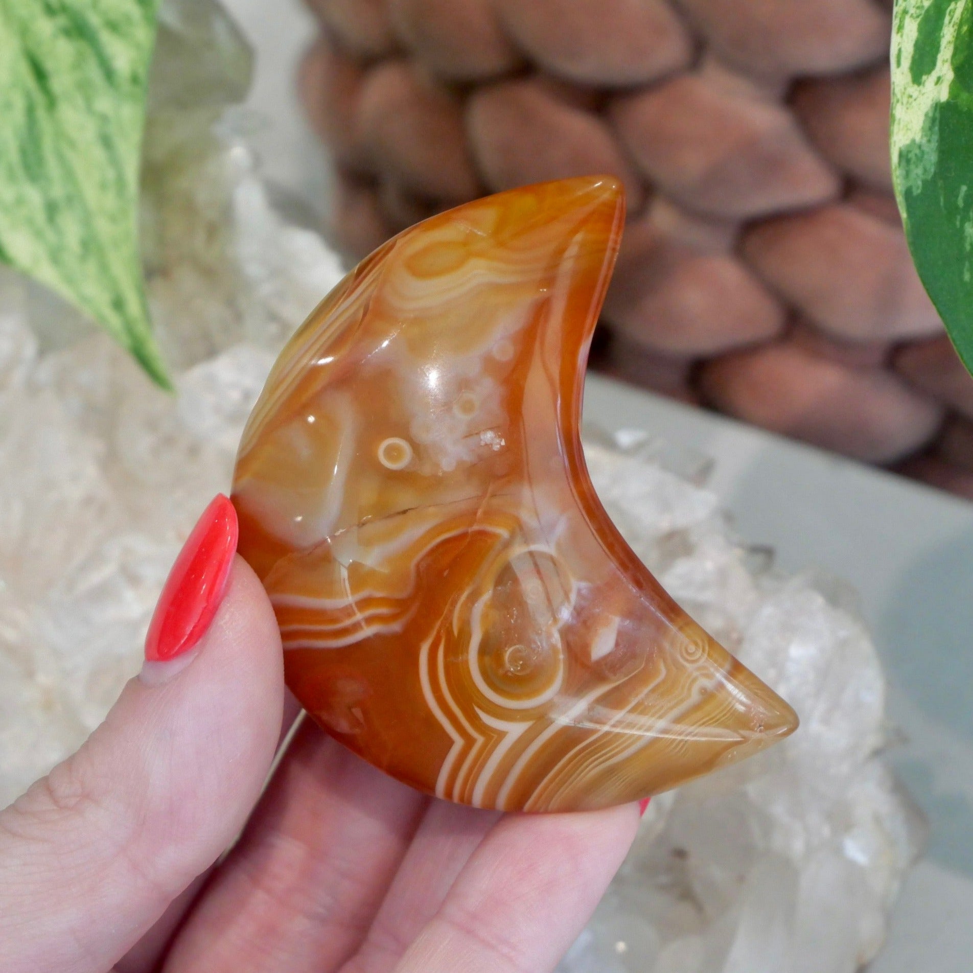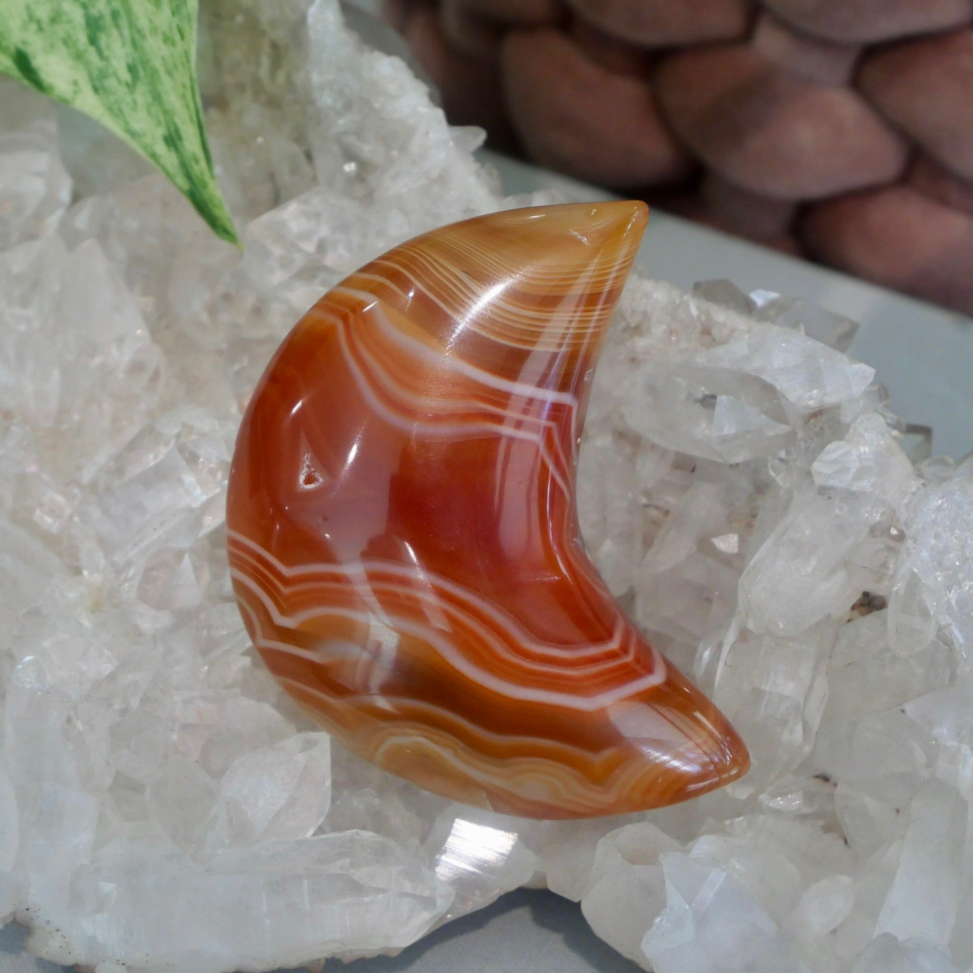 This gorgeous High Quality Carnelian Moon has the most amazing banding. They would look gorgeous styled in a crystal bowl in your home or on your bedside table.