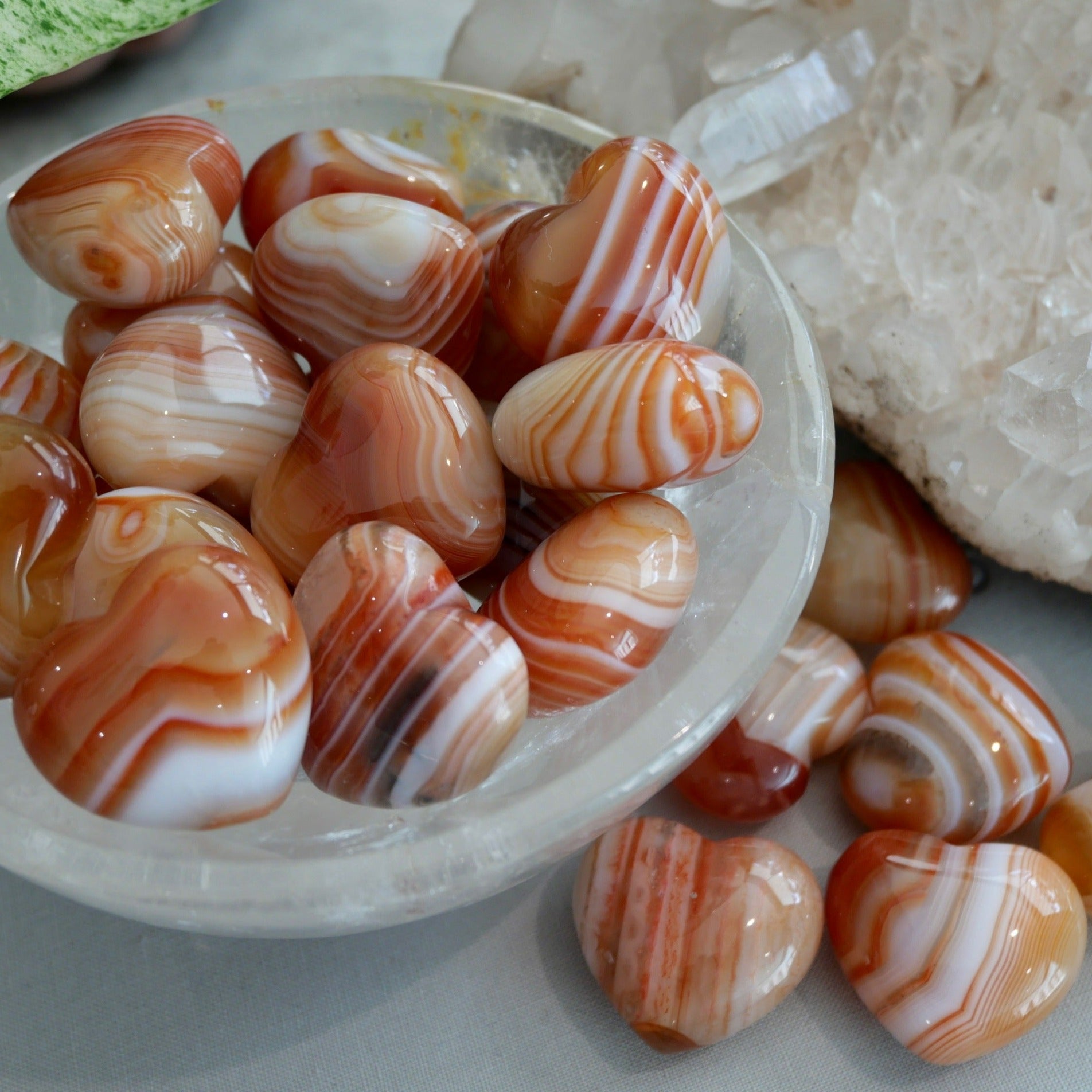 These gorgeous High Quality Carnelian Hearts have the most amazing banding. They would look gorgeous styled in a crystal bowl in your home or on your bedside table.