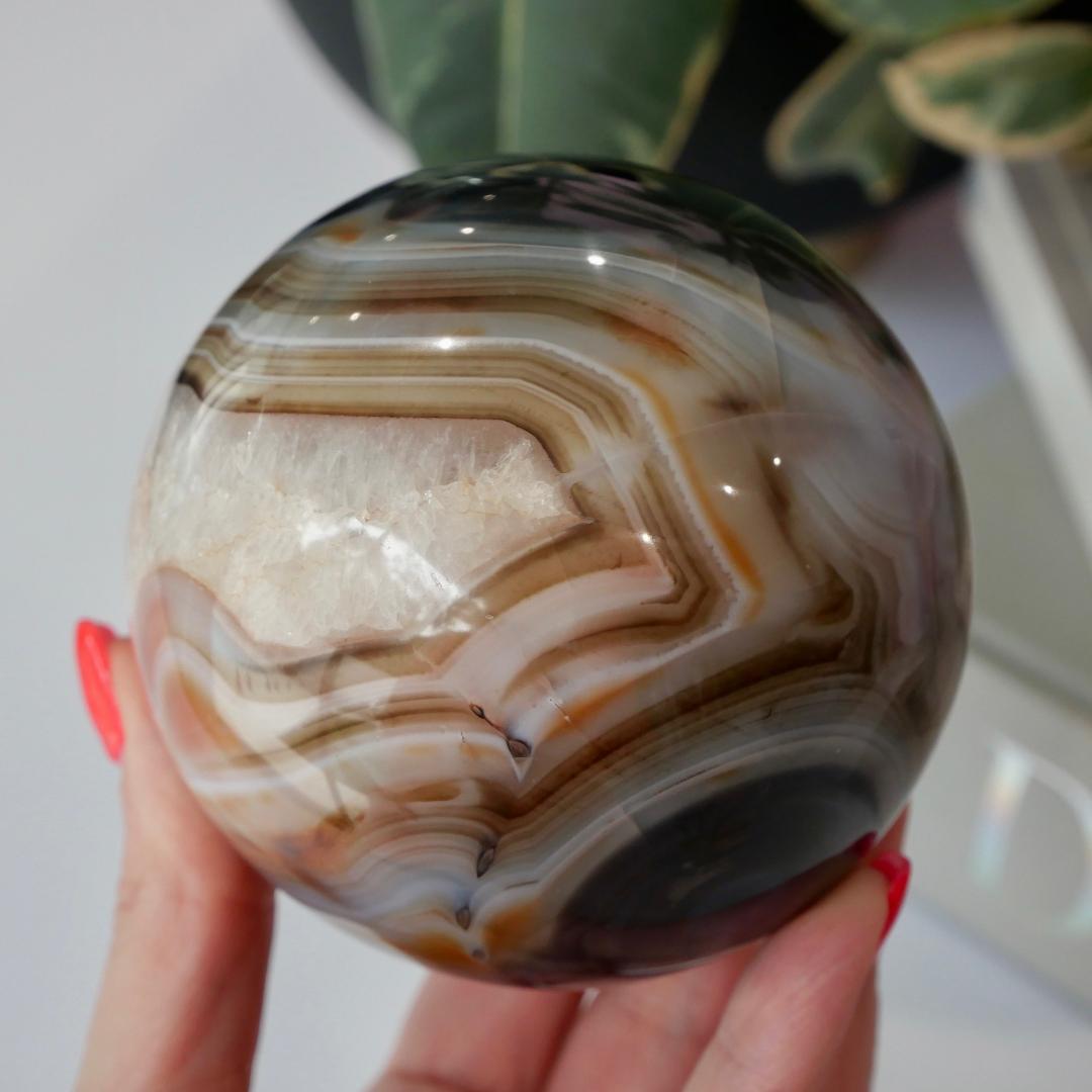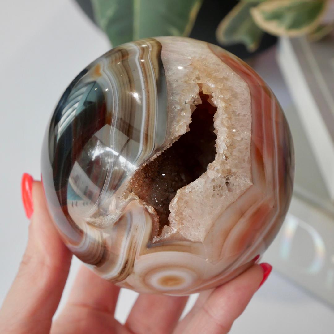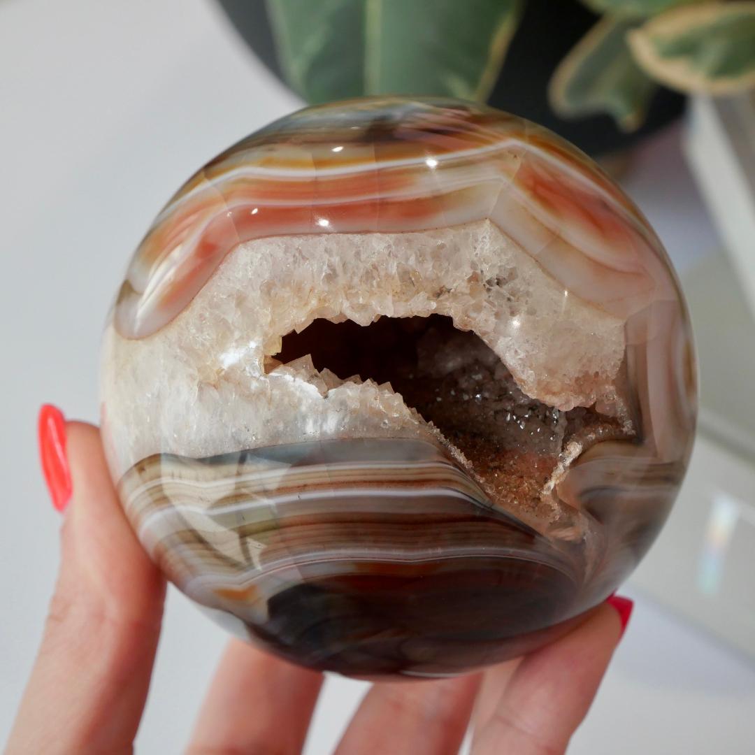 Please note that there may be fracture cracks, caves and holes within your crystal. They are natural stone, a true beauty from mother nature. No two crystals will ever be the same. We like to think of them as perfectly imperfect pieces as they are all unique in their own way. You will receive the exact sphere as pictured.