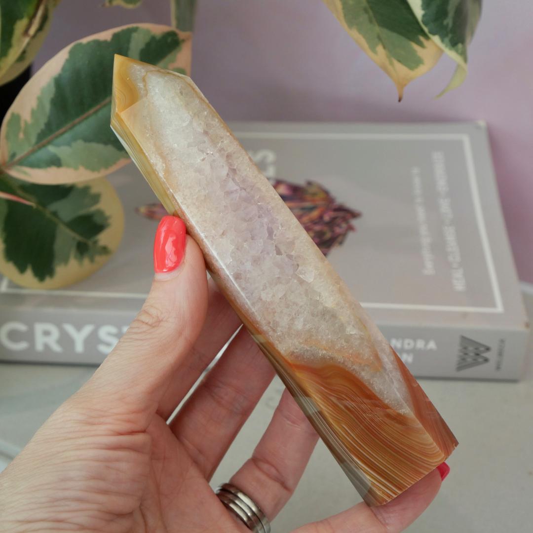 This one is such a stunner. Has the most amazing banding and this gorgeous Carnelian Towers has striking inclusions of clear quartz & Amethyst which is quite unusual.