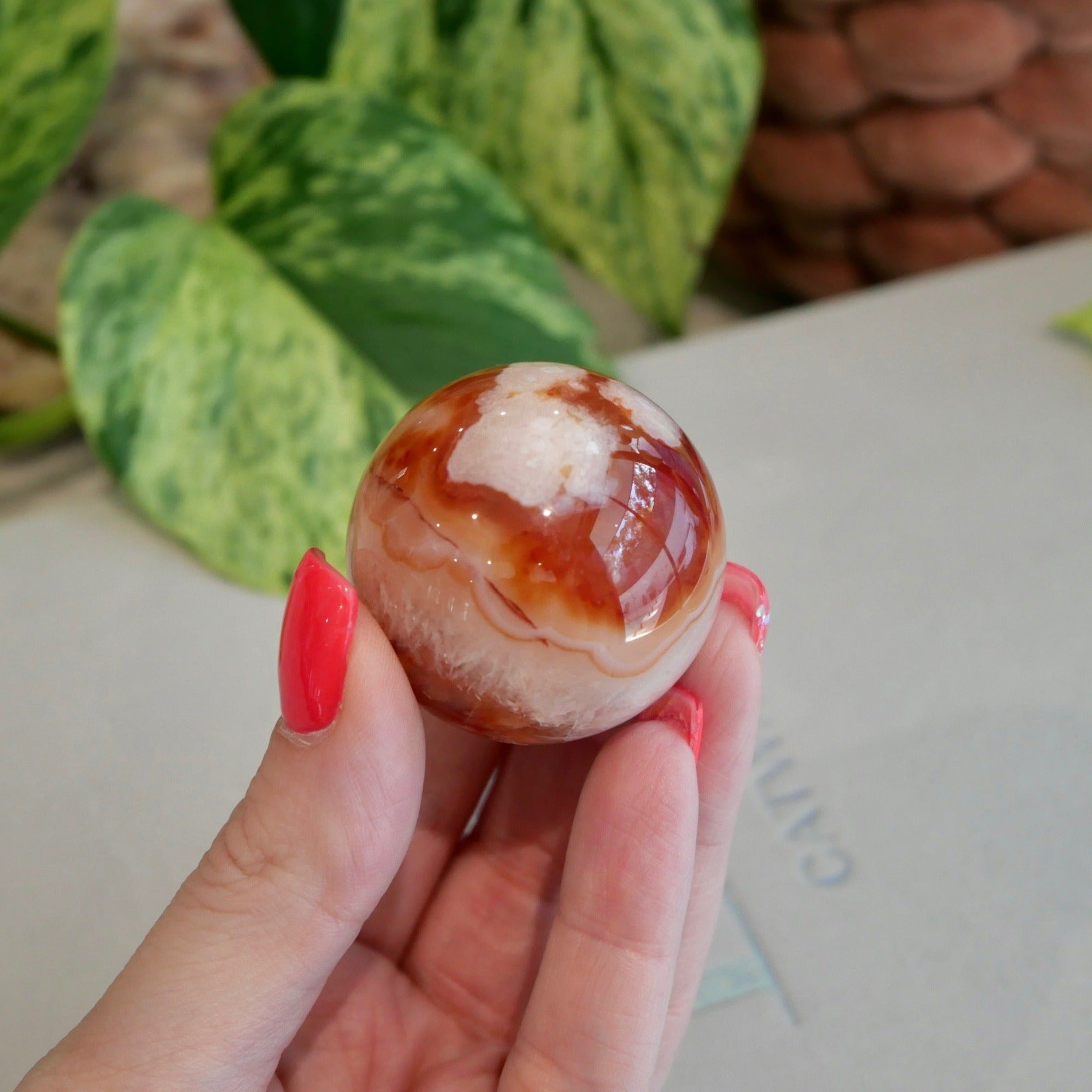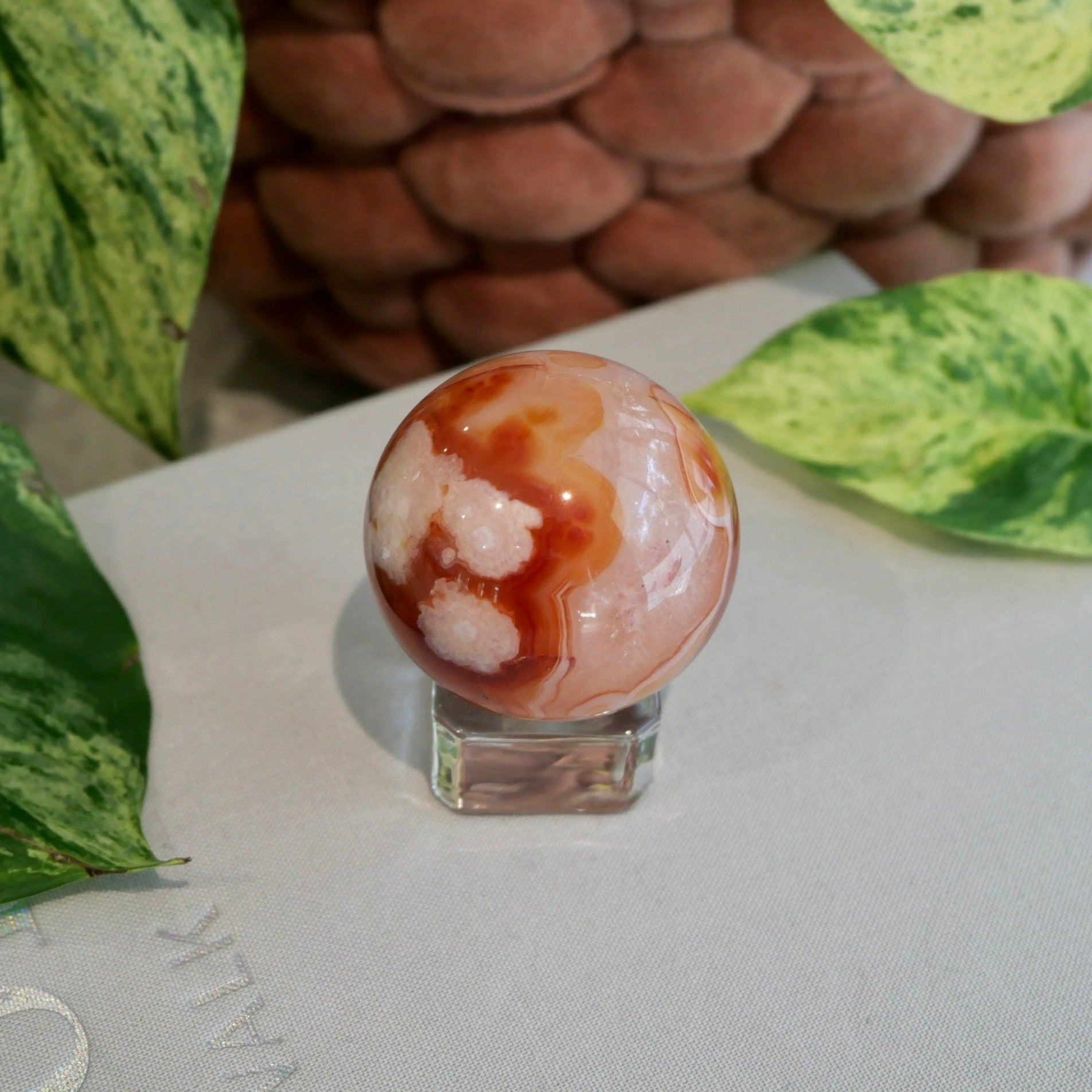 Wow, just wow is all that can be said for this gorgeous Carnelian with Flower Agate Sphere. Such a gorgeous mix of two stunning crystals. A must have for any crystal collector. This piece has a beautiful quartz inclusion making it one powerful crystal.