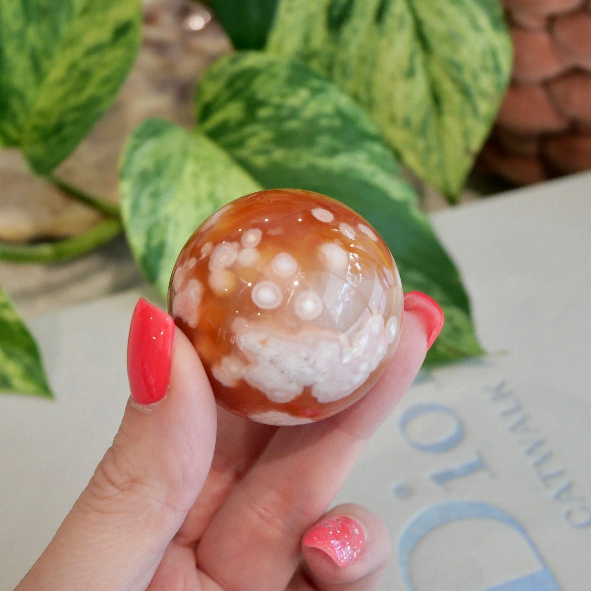 Wow, just wow is all that can be said for this gorgeous Carnelian with Flower Agate Sphere. Such a gorgeous mix of two stunning crystals. A must have for any crystal collector.