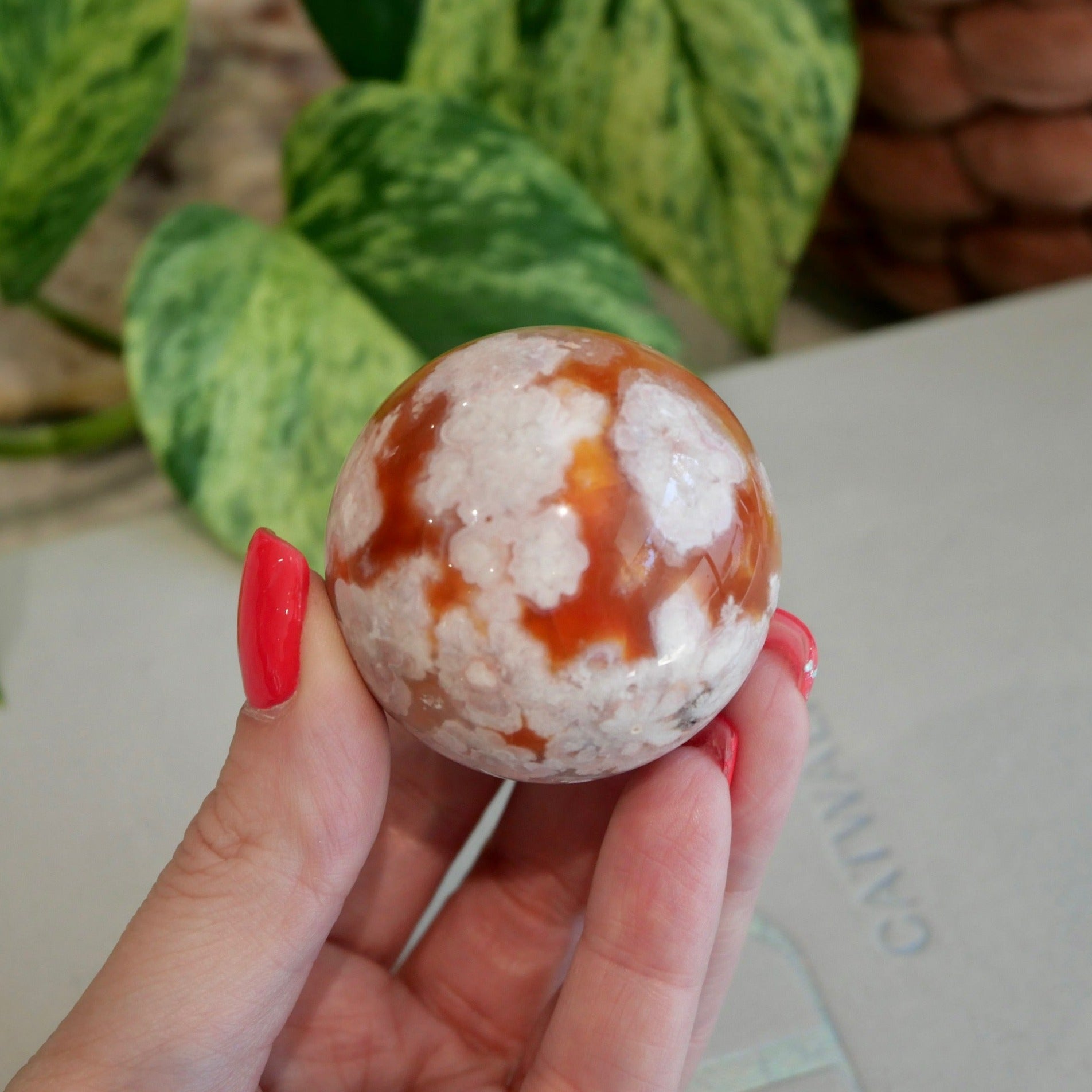 Wow, just wow is all that can be said for this gorgeous Carnelian with Flower Agate Sphere. Such a gorgeous mix of two stunning crystals. A must have for any crystal collector.