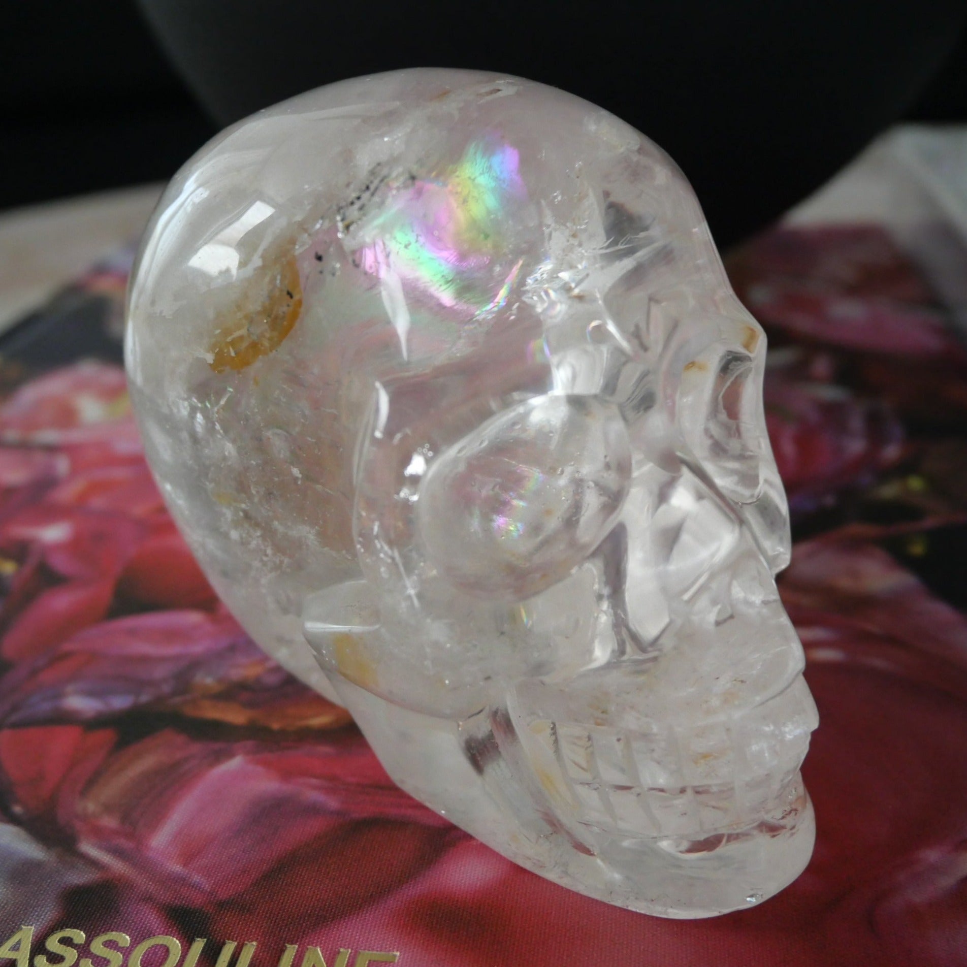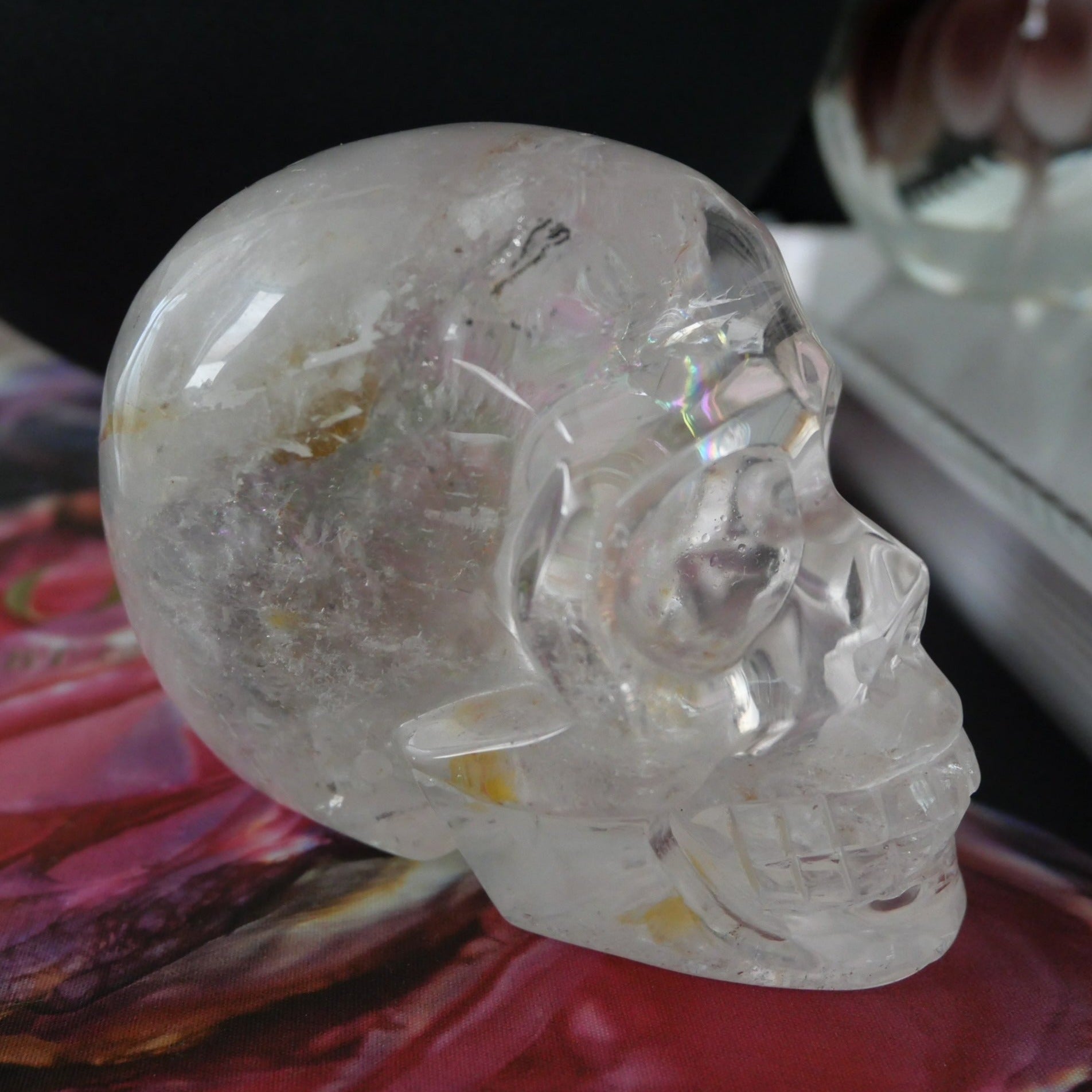 Such a beautifully carved Clear Quartz Skull, would look stunning on the coffee table styled with some books or on the buffet of your home entrance. This is a very high quality Clear Quartz, the clarity and rainbows on this one are amazing.