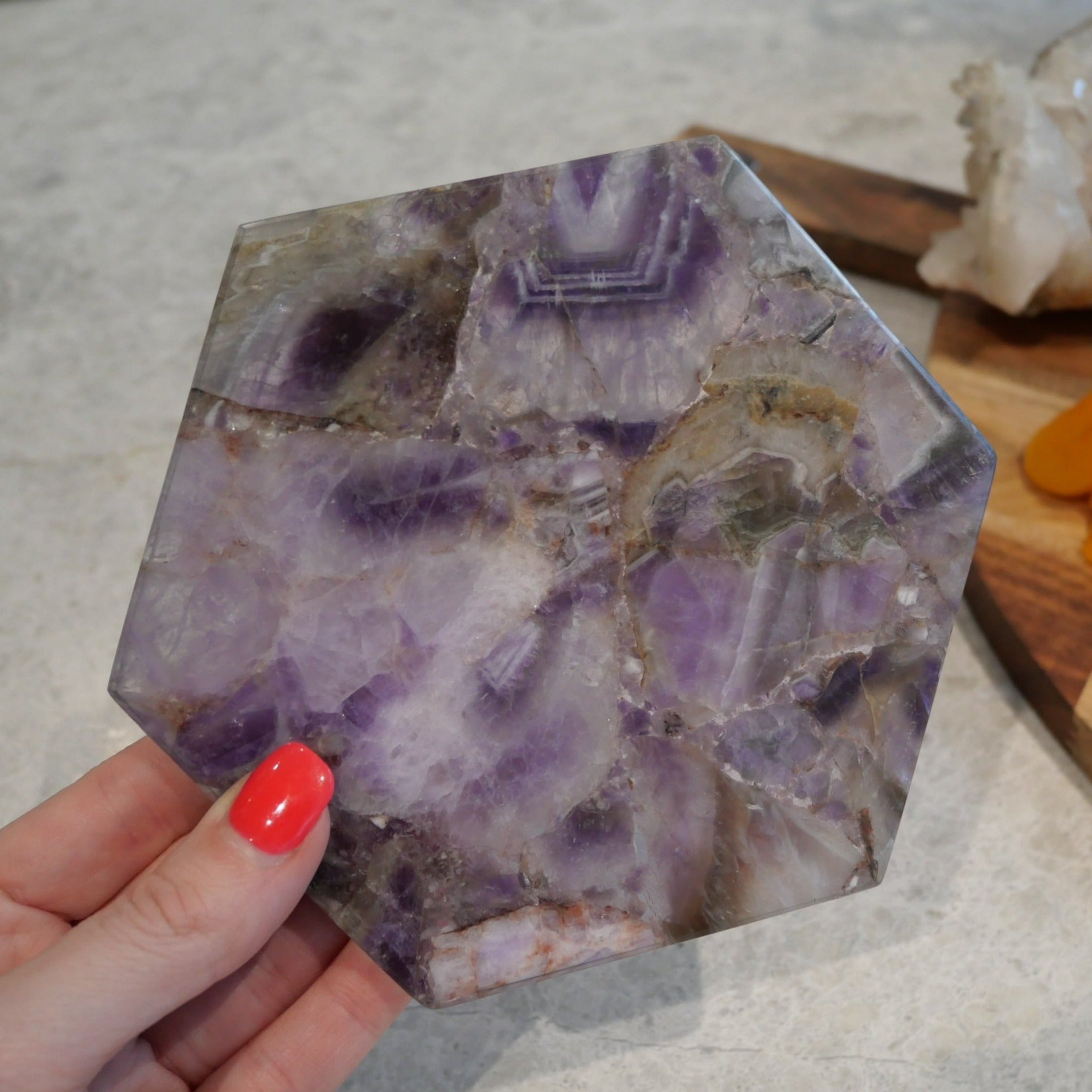 Please note that coasters are hand carved and polished, shape and cut may vary between each coaster. As with all crystal, there may be fracture cracks, small caves or holes within your crystal. Crystal is nature stone and no two pieces will ever be the same. All pieces are unique in their own way.