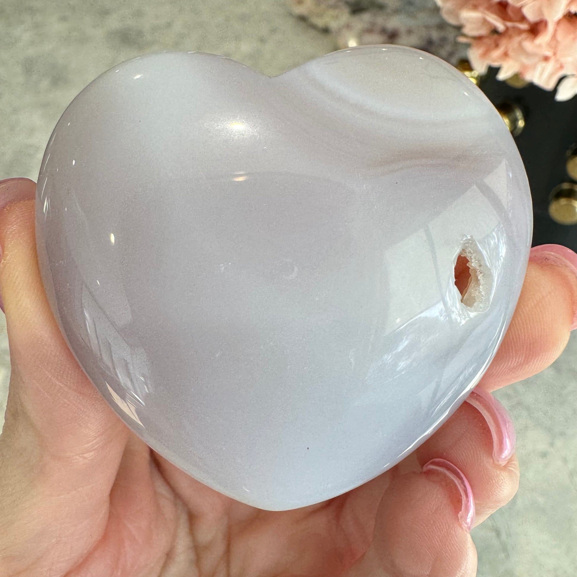 The sparkle on this gorgeous Druzy Agate Heart is amazing. All hearts are hand cut and polished, the quality is stunning. The properties for Druzy Crystals are known for their healing powers, physical, mental and spiritual healing. Can help boost the immune system and reproductive systems. Can also aid in the healing of bones, cartilages, treatment of teeth and joint problems.