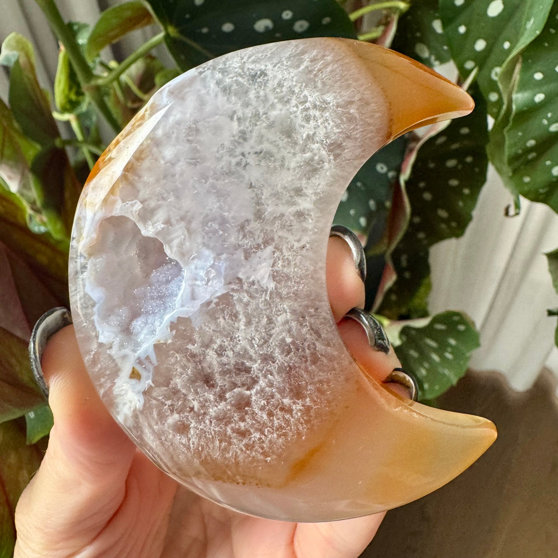 As with all crystals, your crystal may contain fracture cracks, small caves or holes. This is the uniqueness of each crystal, they are a natural stone and a true beauty from mother nature. No two crystals will ever be the same. You will receive the exact moon as pictured.