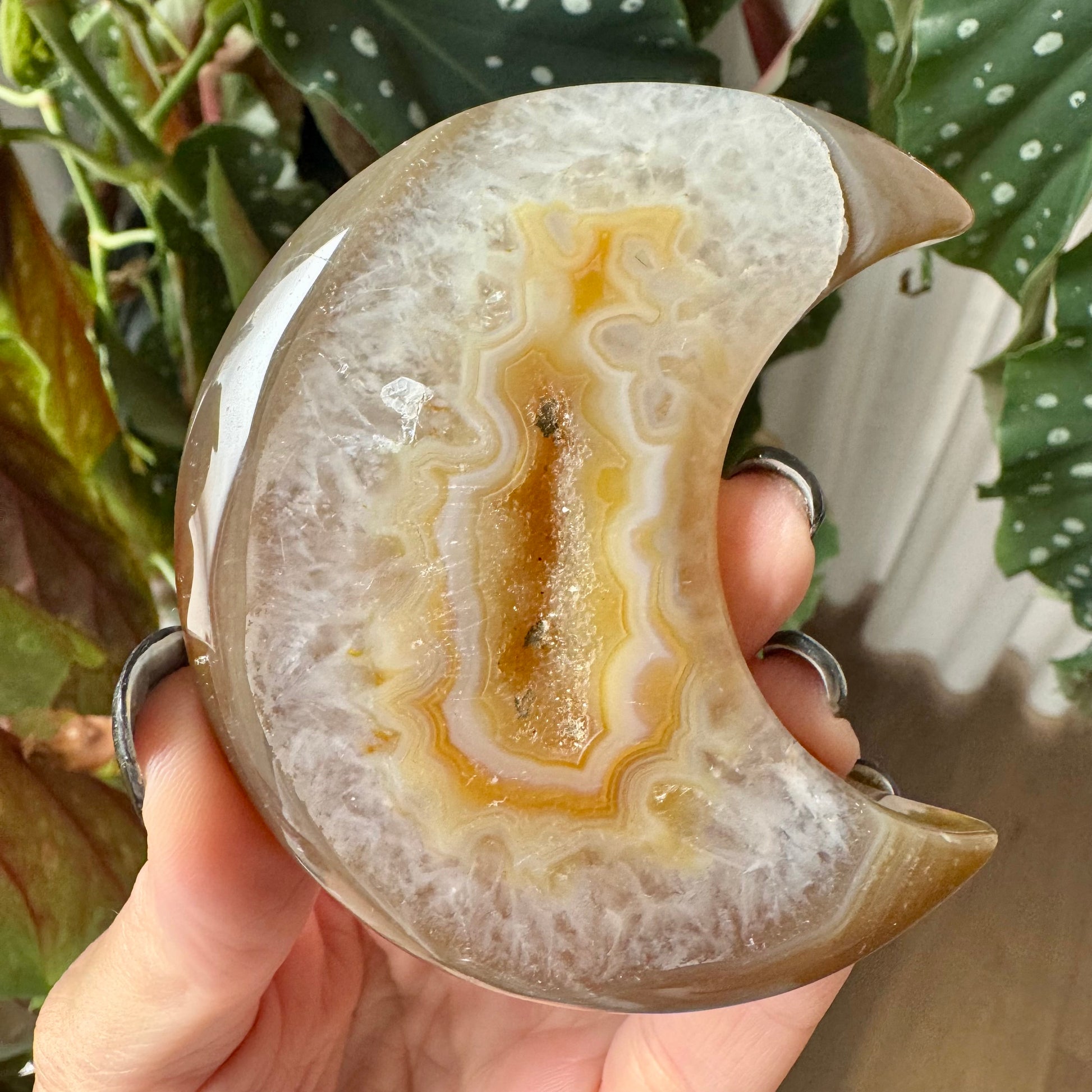 As with all crystals, your crystal may contain fracture cracks, small caves or holes. This is the uniqueness of each crystal, they are a natural stone and a true beauty from mother nature. No two crystals will ever be the same. You will receive the exact moon as pictured.