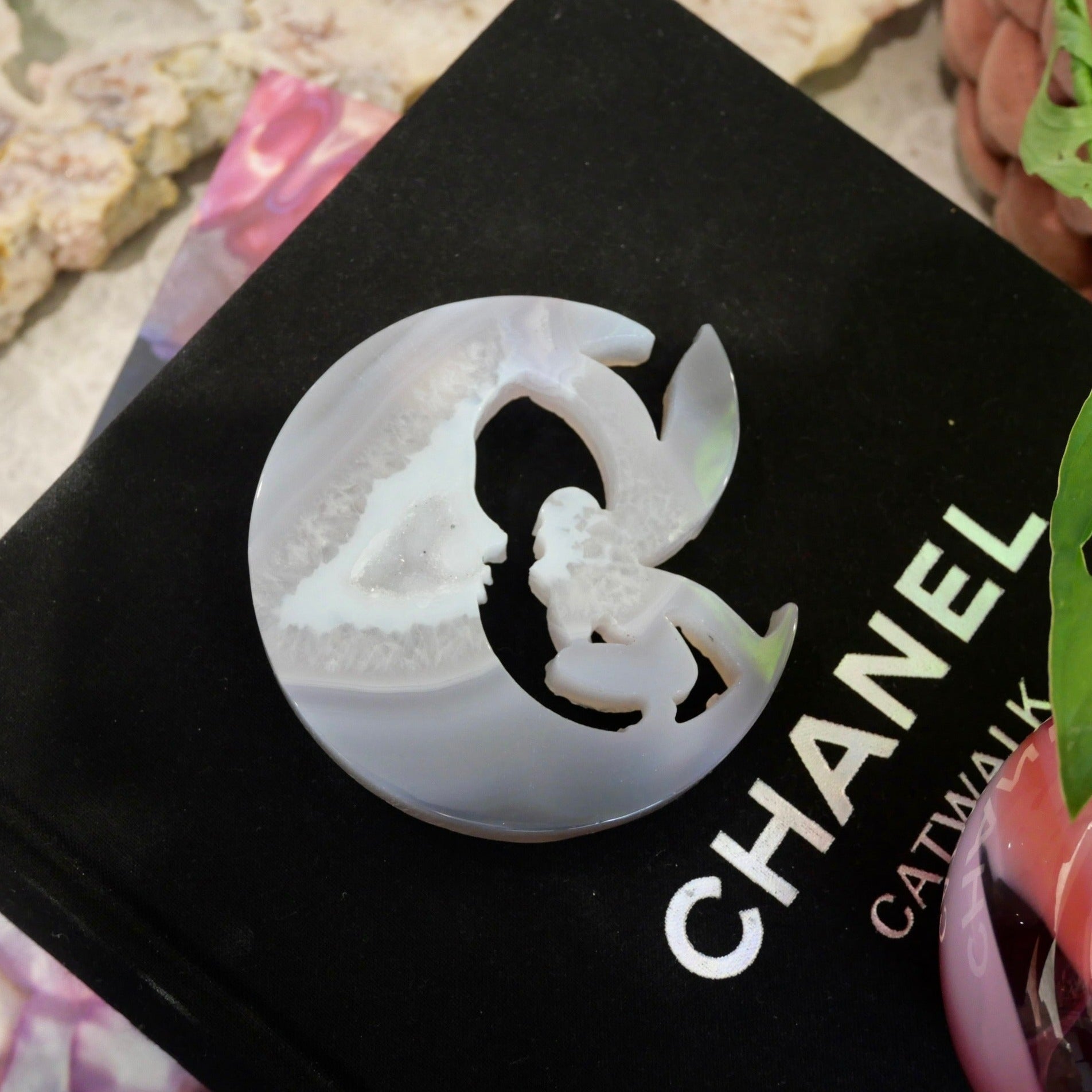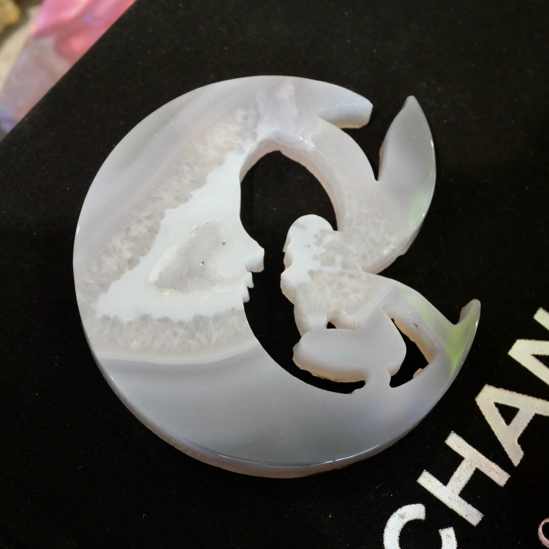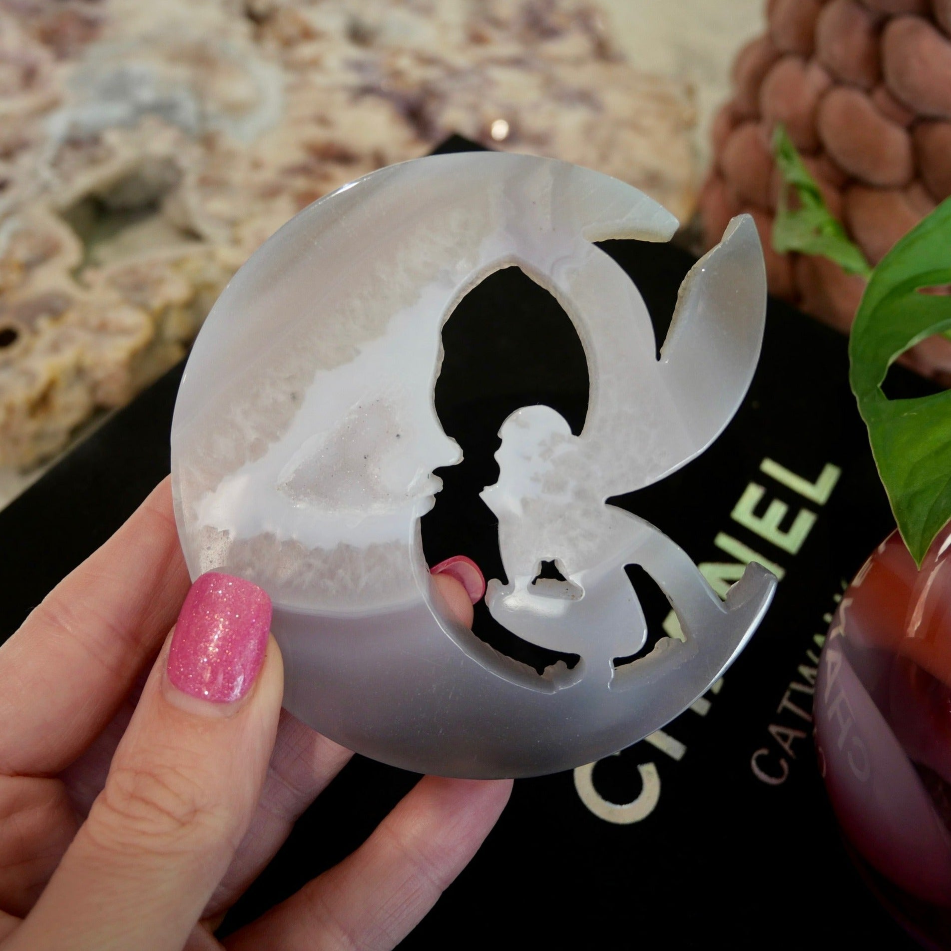 How gorgeous is this Druzy Agate Moon with Fairy carving!!! The sparkle on these babies is amazing. And it is carved to perfection. Gorgeous for girls who love fairies, would be a beautiful addition to a bedside table. All pieces are hand cut and polished, the quality is stunning.
