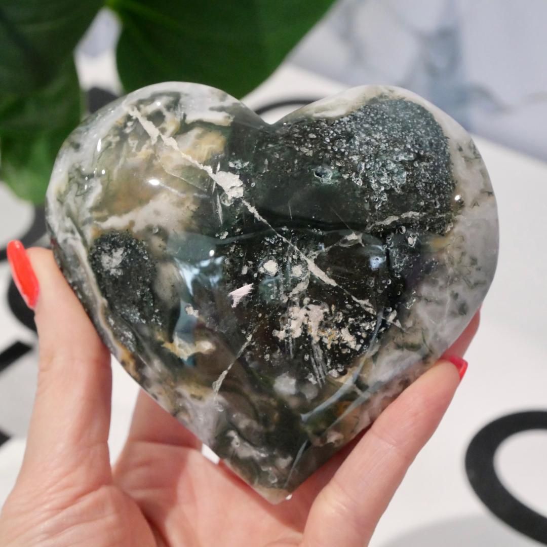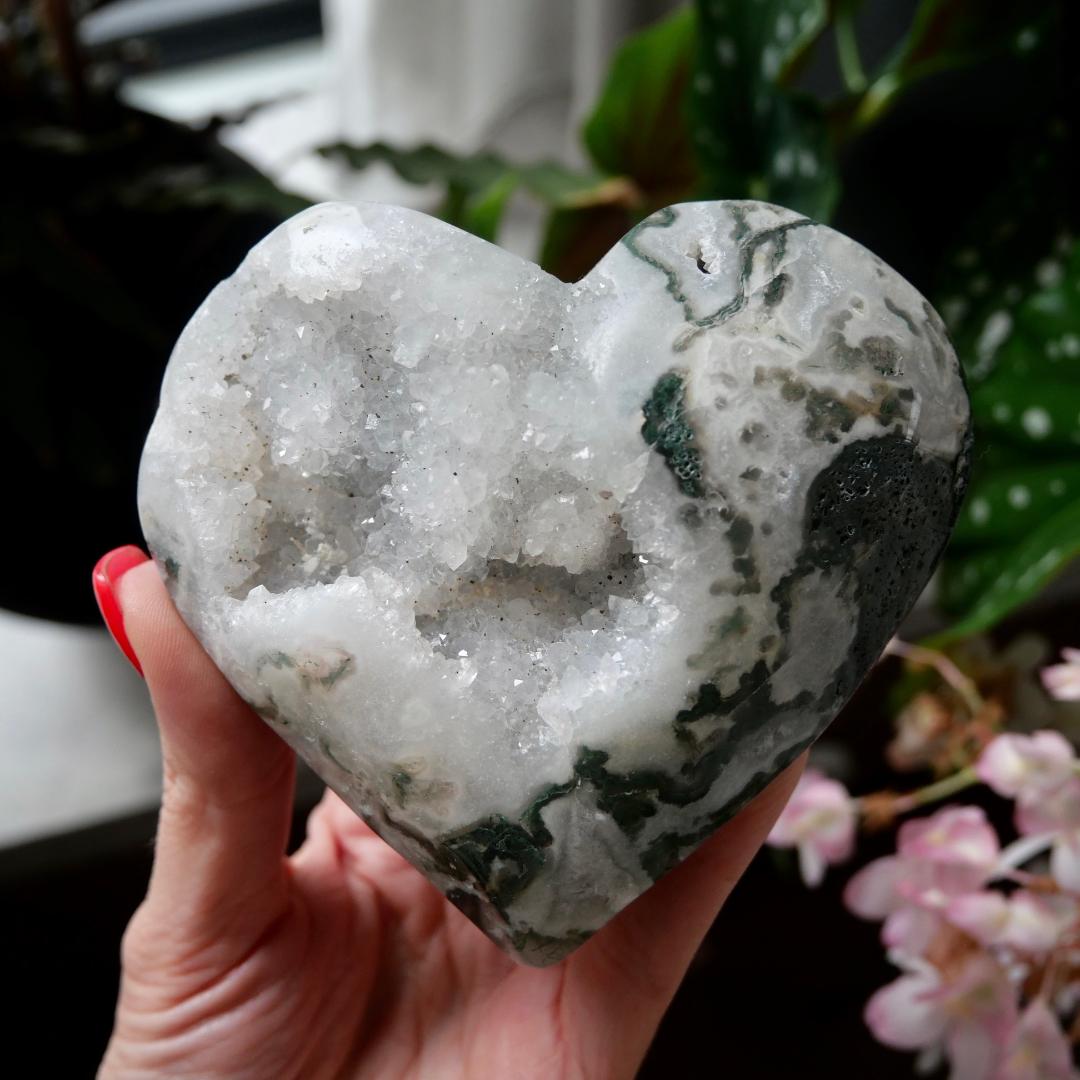 Such a gorgeous Moss Agate heart with the most amazing druzy pockets.