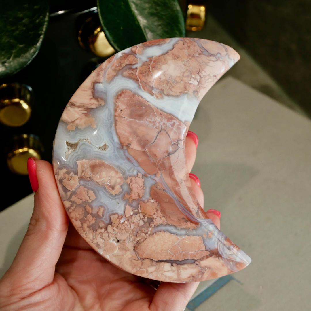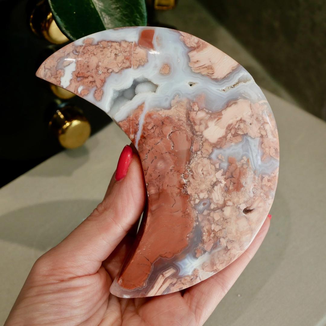 How Stunning is this Druzy Pink Agate Moon. A rare find with such amazing sugar pockets and sparkle. Make this gorgeous piece part of your crystal collection.