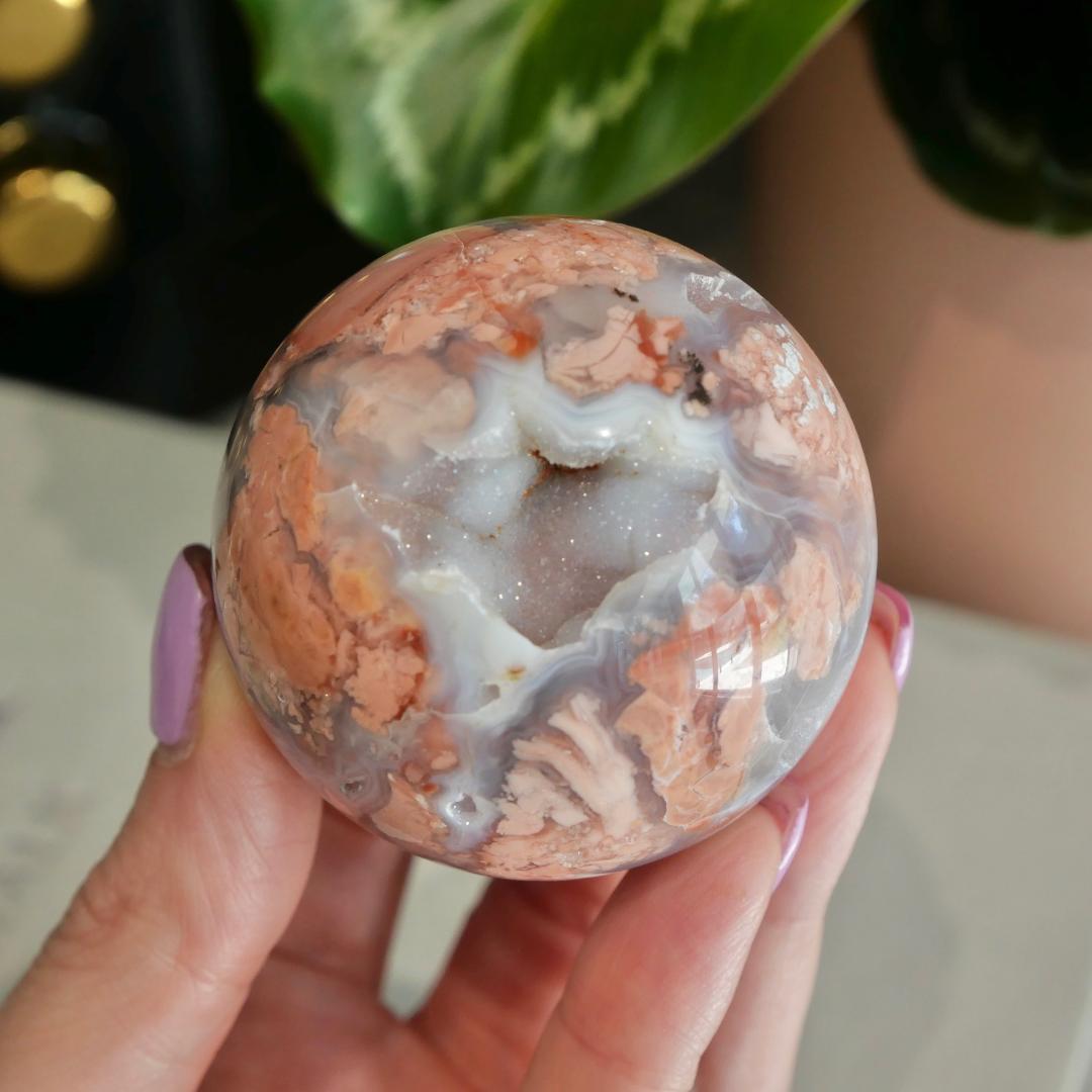 Please note, you will receive the exact Sphere as pictured. As with all crystals, they may contain fracture cracks, small caves or holes. They are a natural stone and true beauty of mother nature, No two pieces will be the same, they have been hand carved and polished.