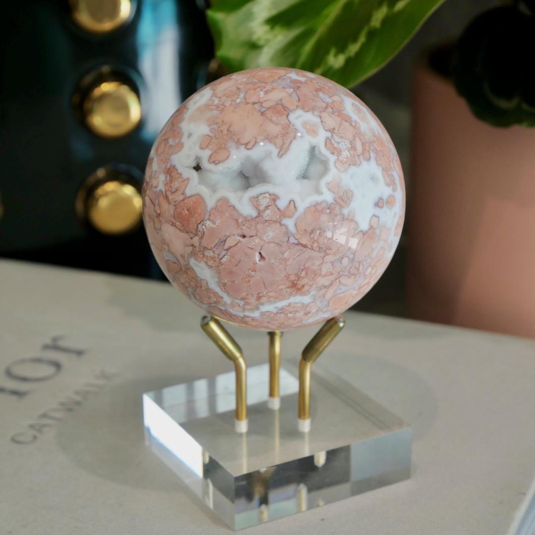How Stunning is this Druzy Pink Agate Sphere. A rare find with such amazing sugar pockets and sparkle. Make this gorgeous piece part of your crystal collection.
