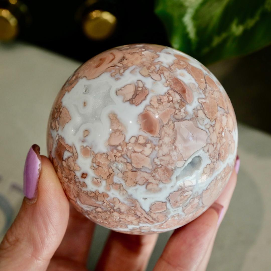 Please note, you will receive the exact Sphere as pictured. As with all crystals, they may contain fracture cracks, small caves or holes. They are a natural stone and true beauty of mother nature, No two pieces will be the same, they have been hand carved and polished.