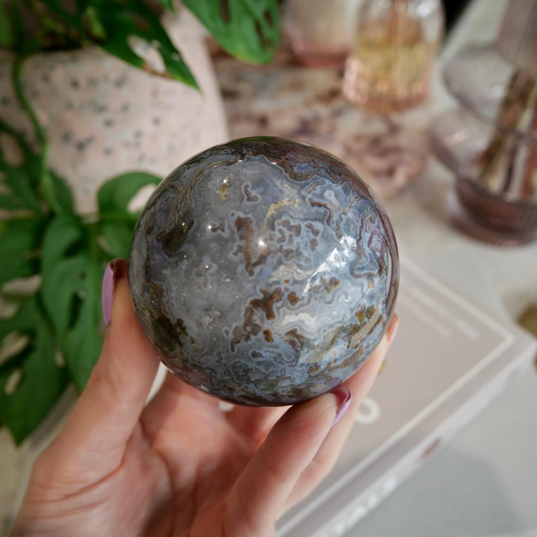 How Stunning is this rare Druzy Purple Moss Agate Sphere.
