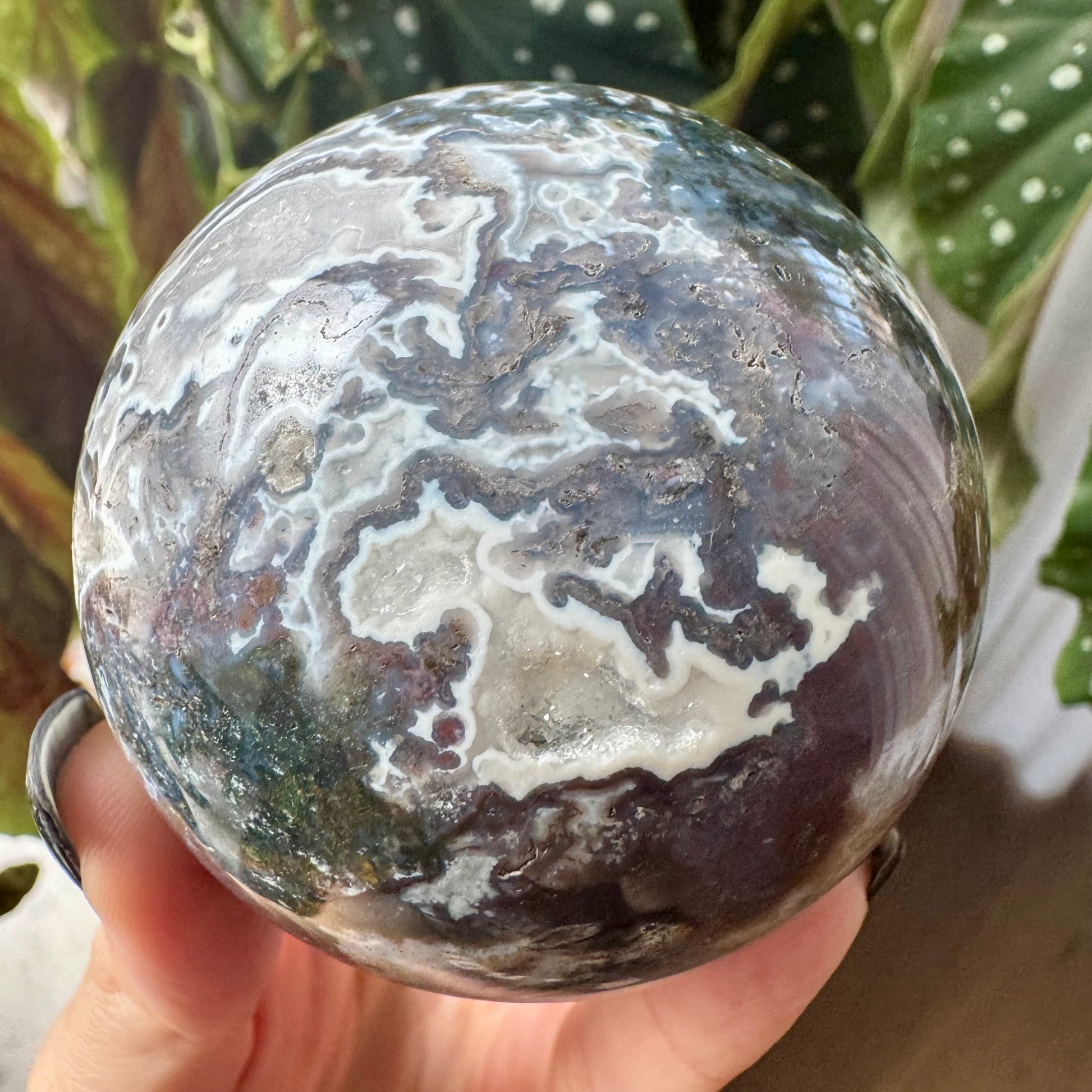 How Stunning is this rare Druzy Purple Moss Agate Sphere. The druzy sugar pockets are a true beauty of Mother Nature.