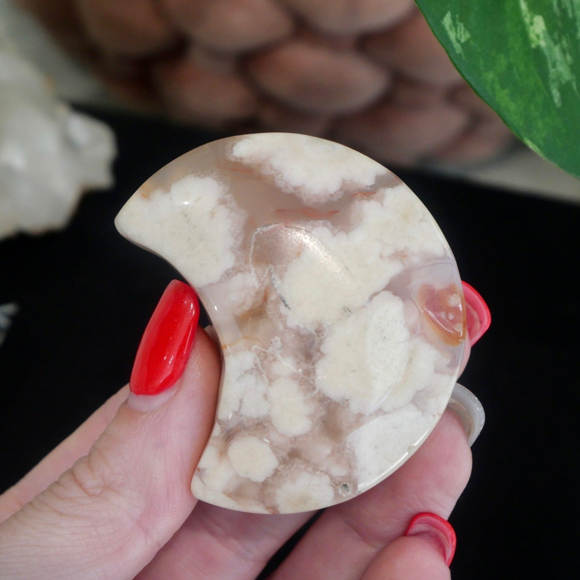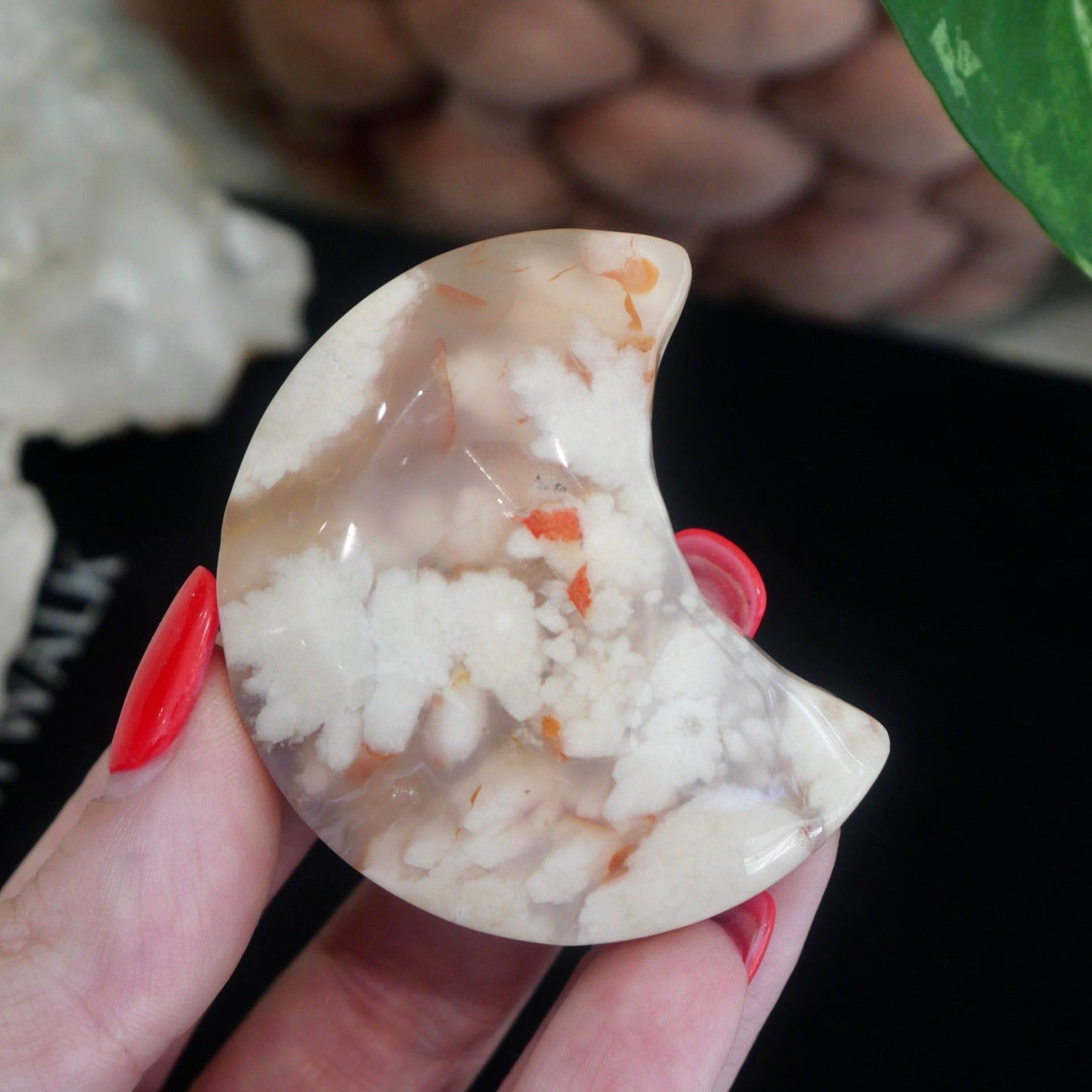 How gorgeous is this Flower Agate Moon.... Would be a beautiful addition to any crystal collection, style in a crystal bowl on your coffee table or side table.
