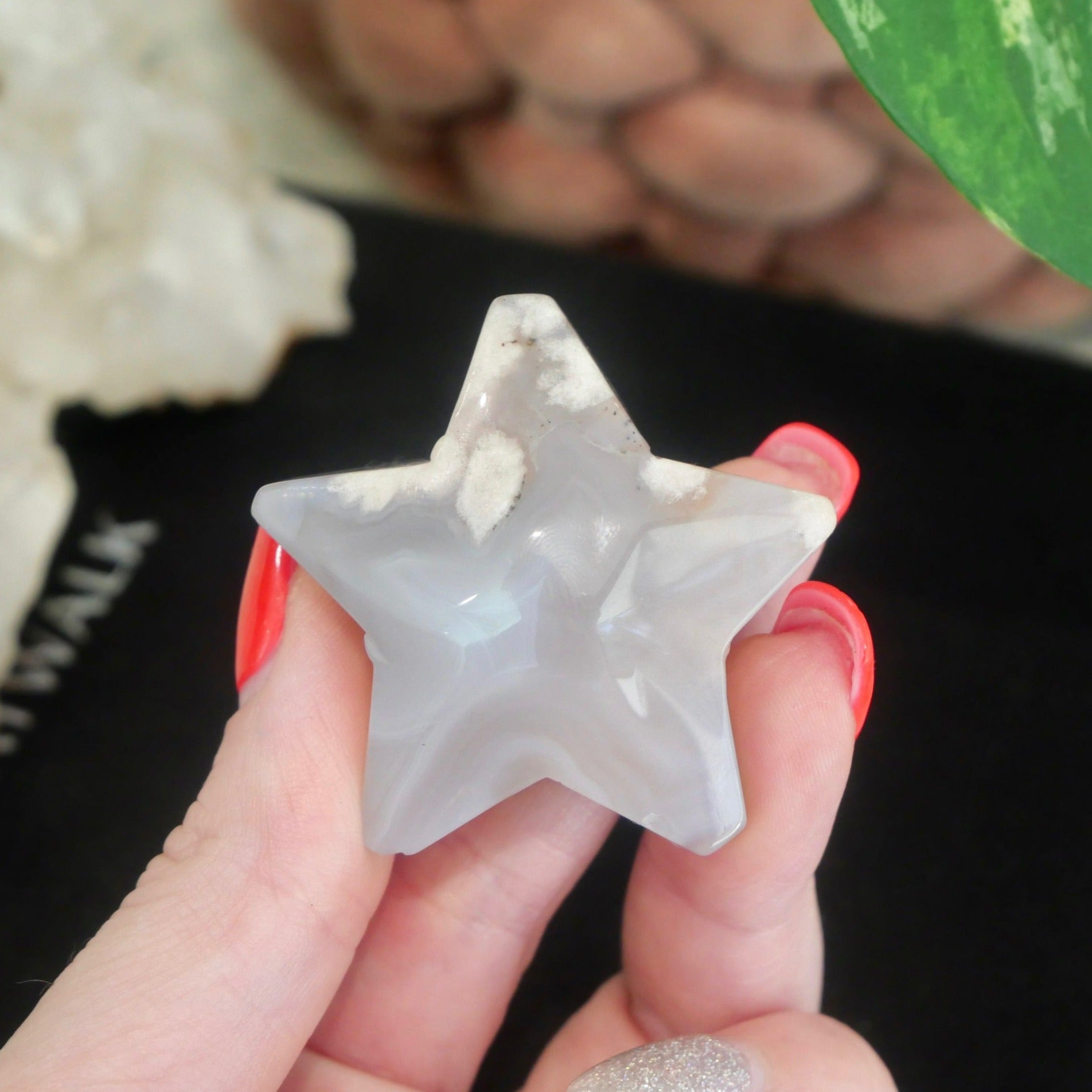 How gorgeous is this Flower Agate Star.... Would be a beautiful addition to any crystal collection, style in a crystal bowl on your coffee table or side table.