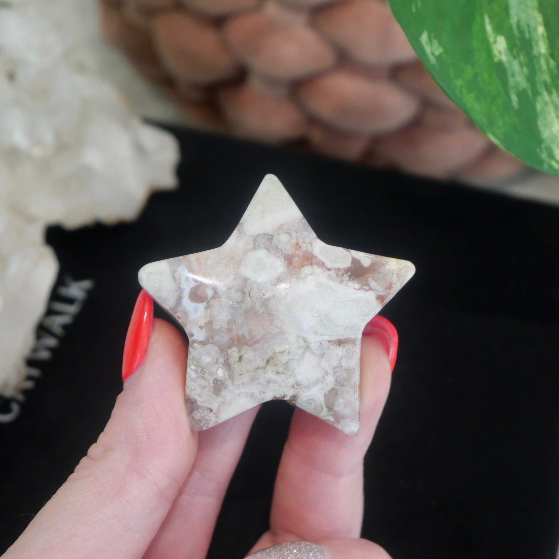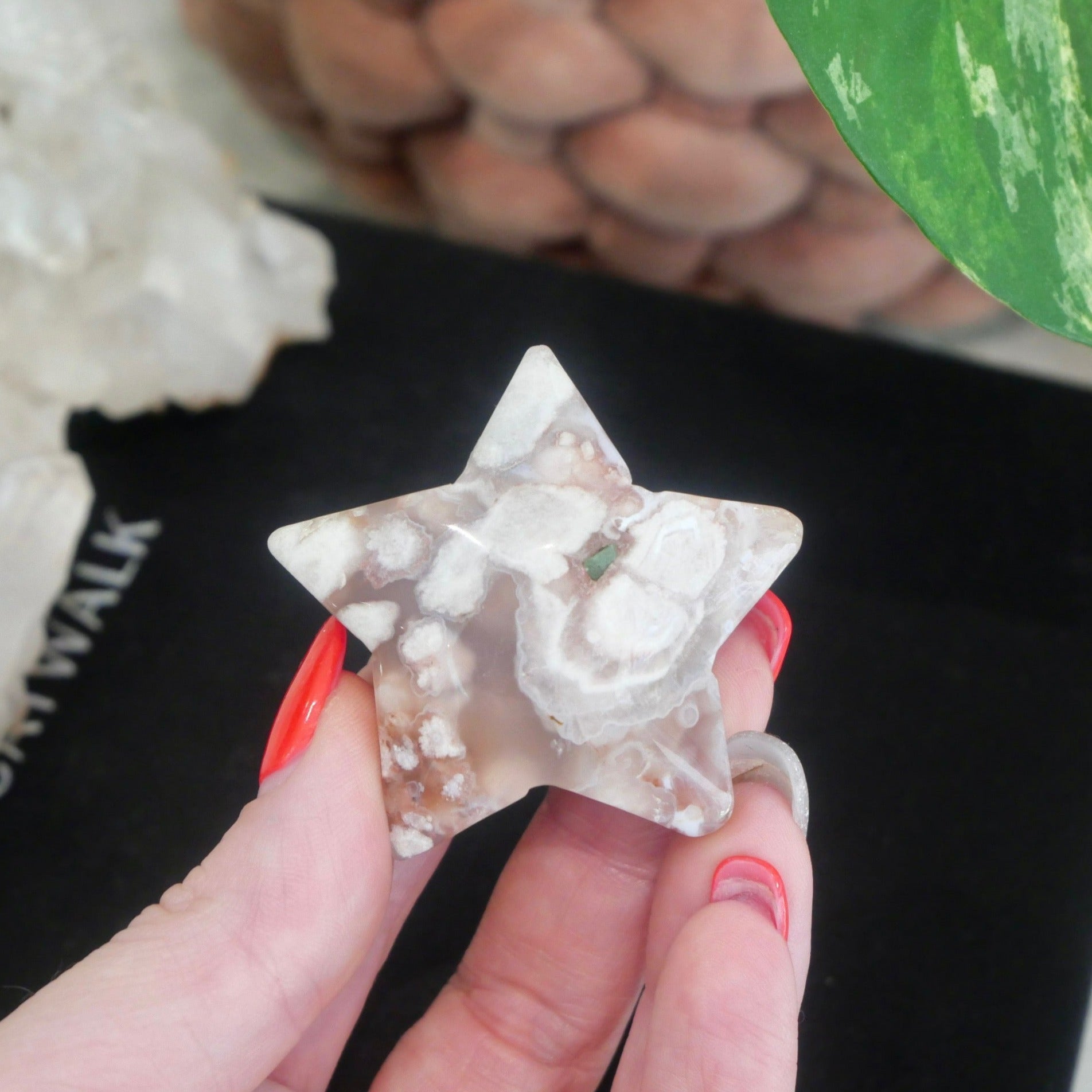 How gorgeous is this Flower Agate Star.... Would be a beautiful addition to any crystal collection, style in a crystal bowl on your coffee table or side table.