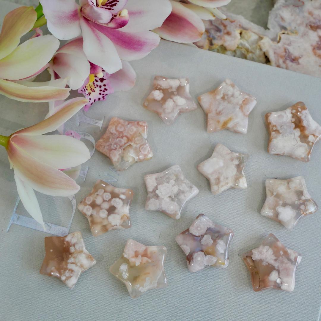 How gorgeous are these Flower Agate Stars.... Would be a beautiful addition to your tumble collection, or to even pop in your pocket to carry with you in times of need.