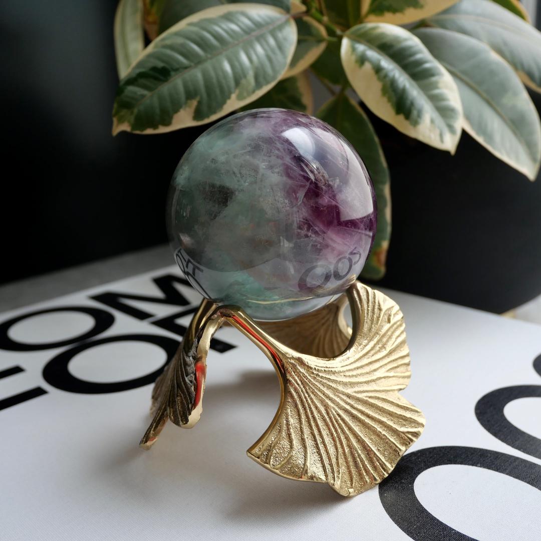 What a stunning way to showcase your beautiful Crystal Spheres. These Ginkgo Leaf Stands make your already gorgeous spheres become a showpiece on their own pedestal to shine.