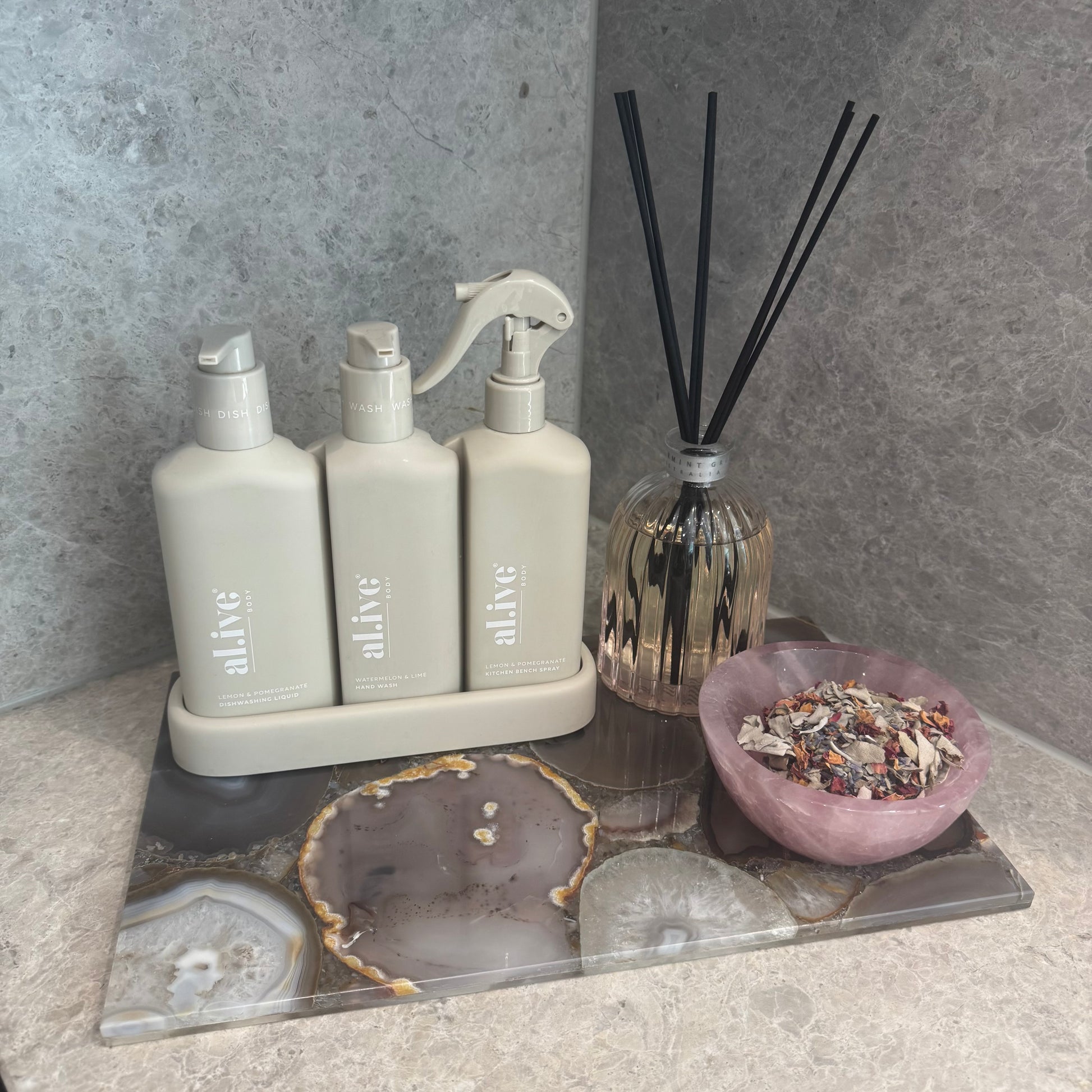 Please note that with all crystal, there may be fracture cracks, small caves or holes within your piece. They are a natural stone, no two platters will ever be the same. Each piece is unique in its own way. They are hand cut and polished. All platters come beautifully packaged in a protective box to ensure safekeeping when they are not in use. Your platter will be intuitively chosen for you.