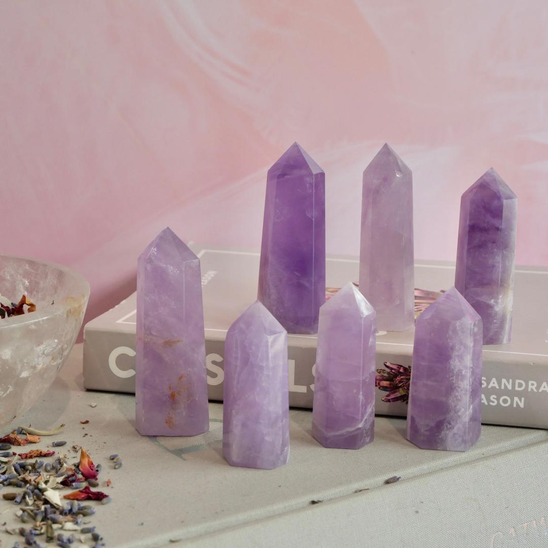 These towers are super gorgeous. They are a high quality Lavender Amethyst, the colour is absolutely stunning.