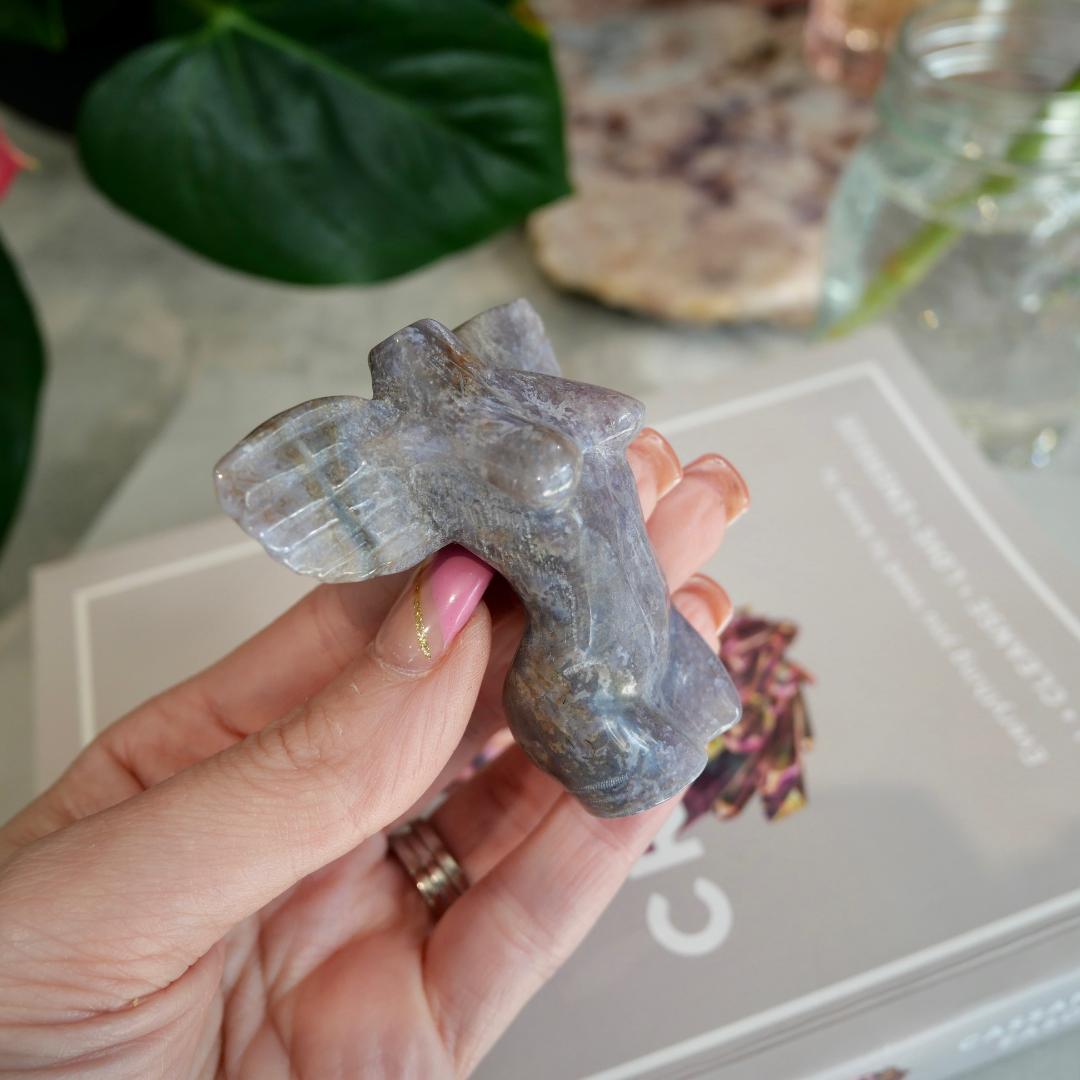 Please note that there may be fracture cracks, caves and holes within your crystal. They are natural stone, a true beauty from mother nature. They are cut and polished by hand, no two crystals will ever be the same. We like to think of them as perfectly imperfect pieces as they are all unique in their own way. You will receive the exact Mini Ocean Jasper Goddess Angel as pictured.