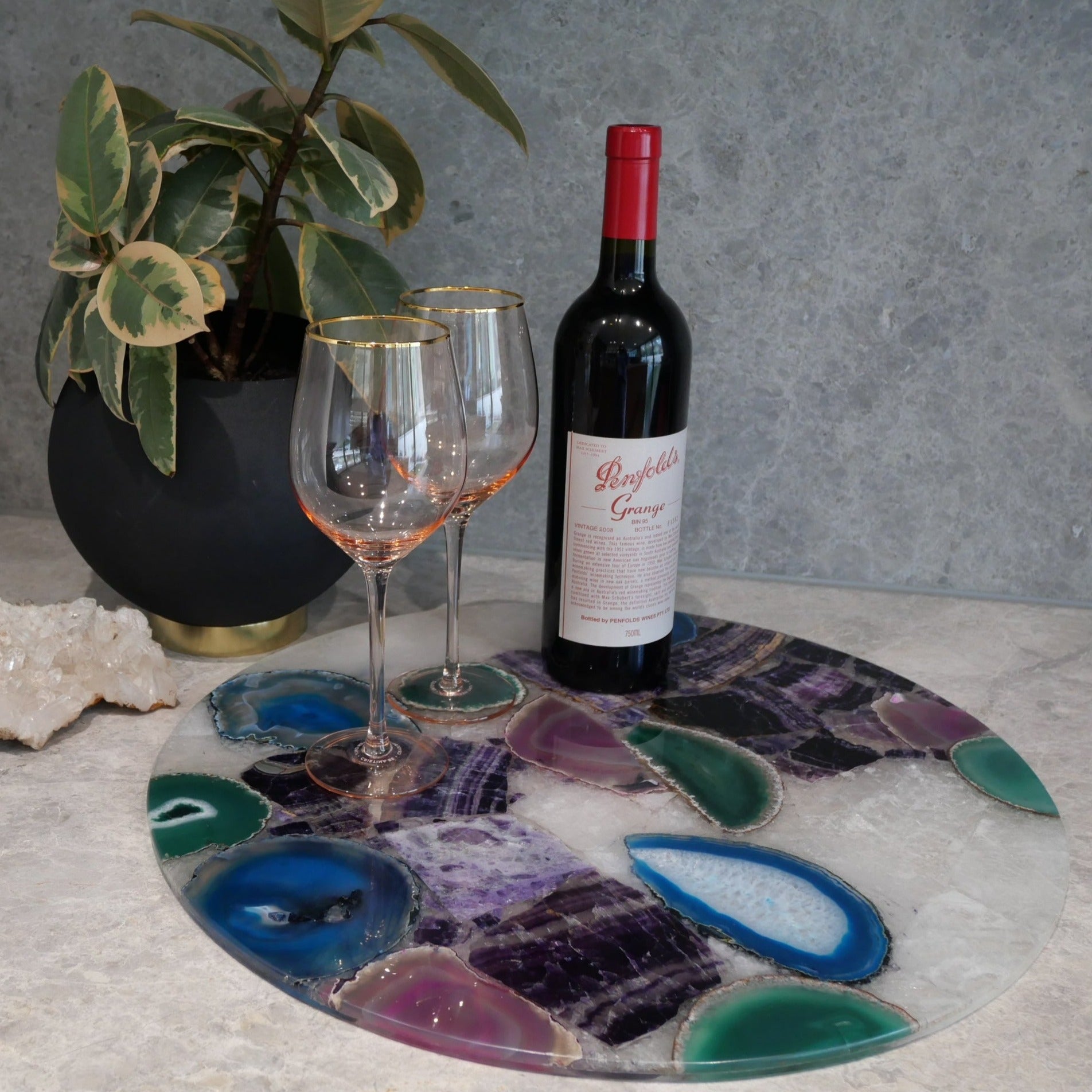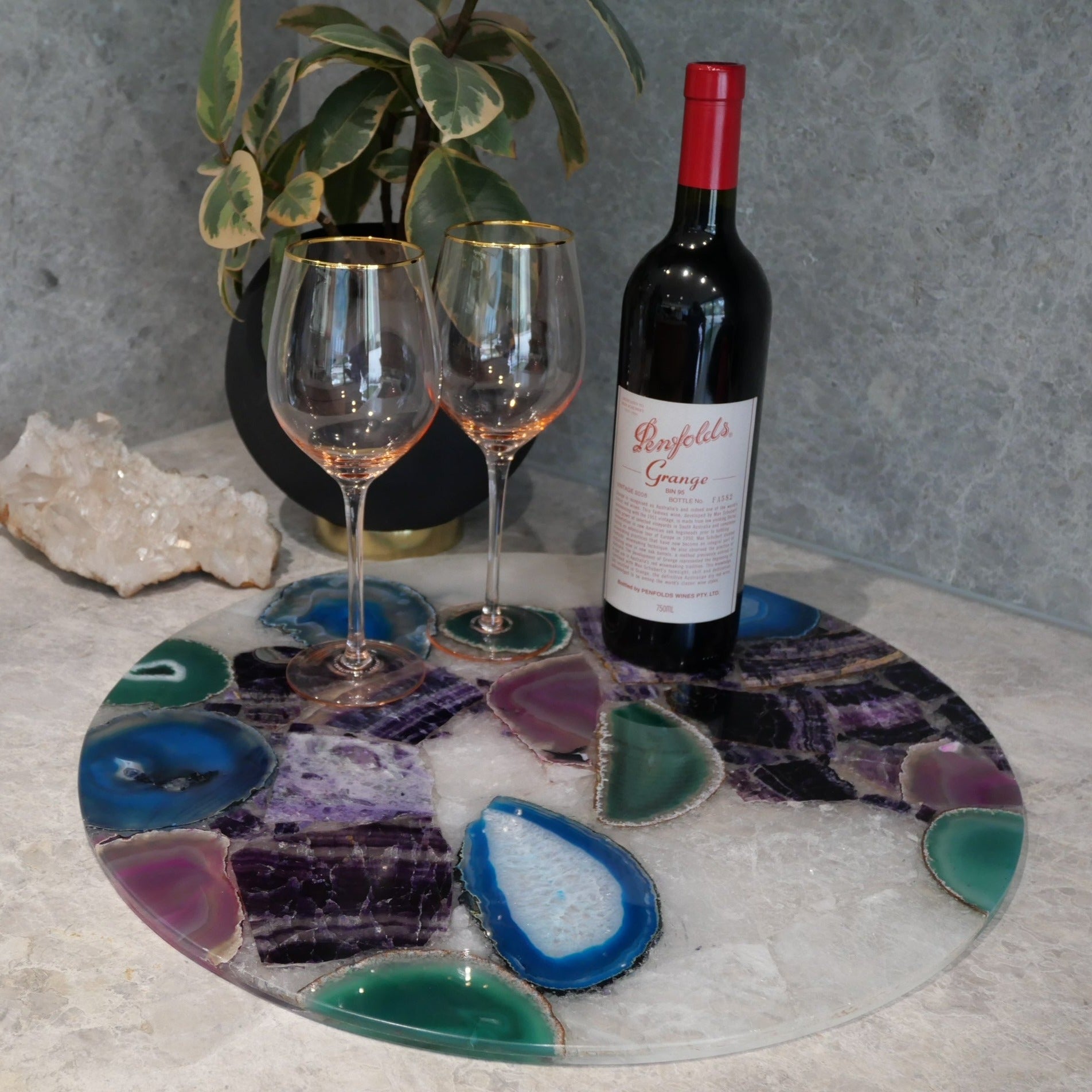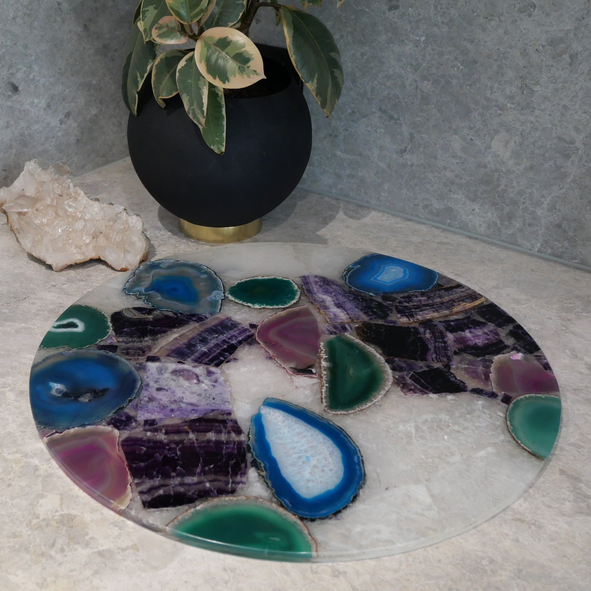 Measurements: 450mm Round Diameter, 10mm Thickness. 5mm Crystal, 5mm Glass.