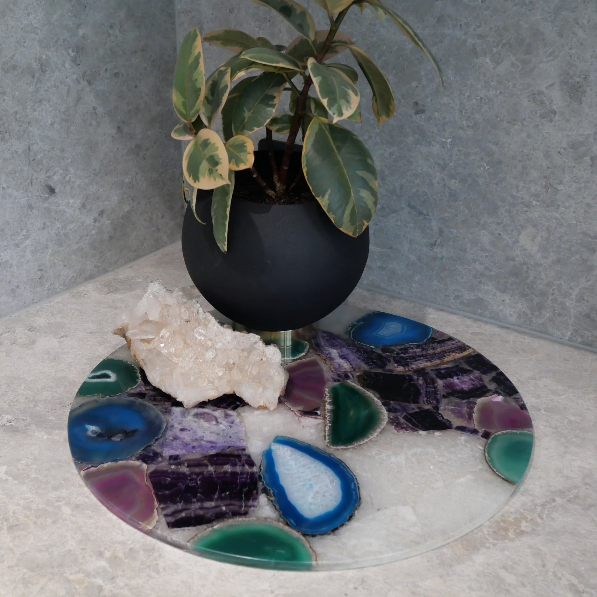 Please note, no two pieces will ever be the same as this is natural stone. They are hand cut and polished. As with all crystals, there may be fracture cracks, small caves or holes, they are all unique in there own way, this is what makes every piece a true beauty. Platter will be intuitively chosen for you. All platters come beautifully packaged in a protective box to ensure safekeeping when they are not in use.