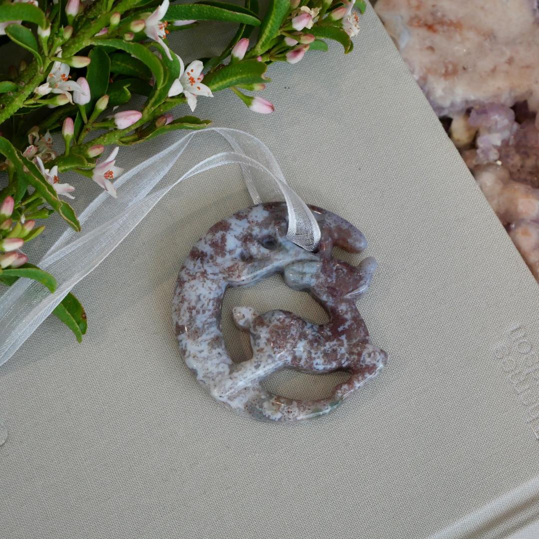 So Cute..... How gorgeous is this beautifully carved Ocean Jasper Reindeer Decoration. What a stunning addition this would make to your Christmas Tree this Year or even a gorgeous hanging decoration to pop on any door handle. Would make a precious keepsake for a loved one.