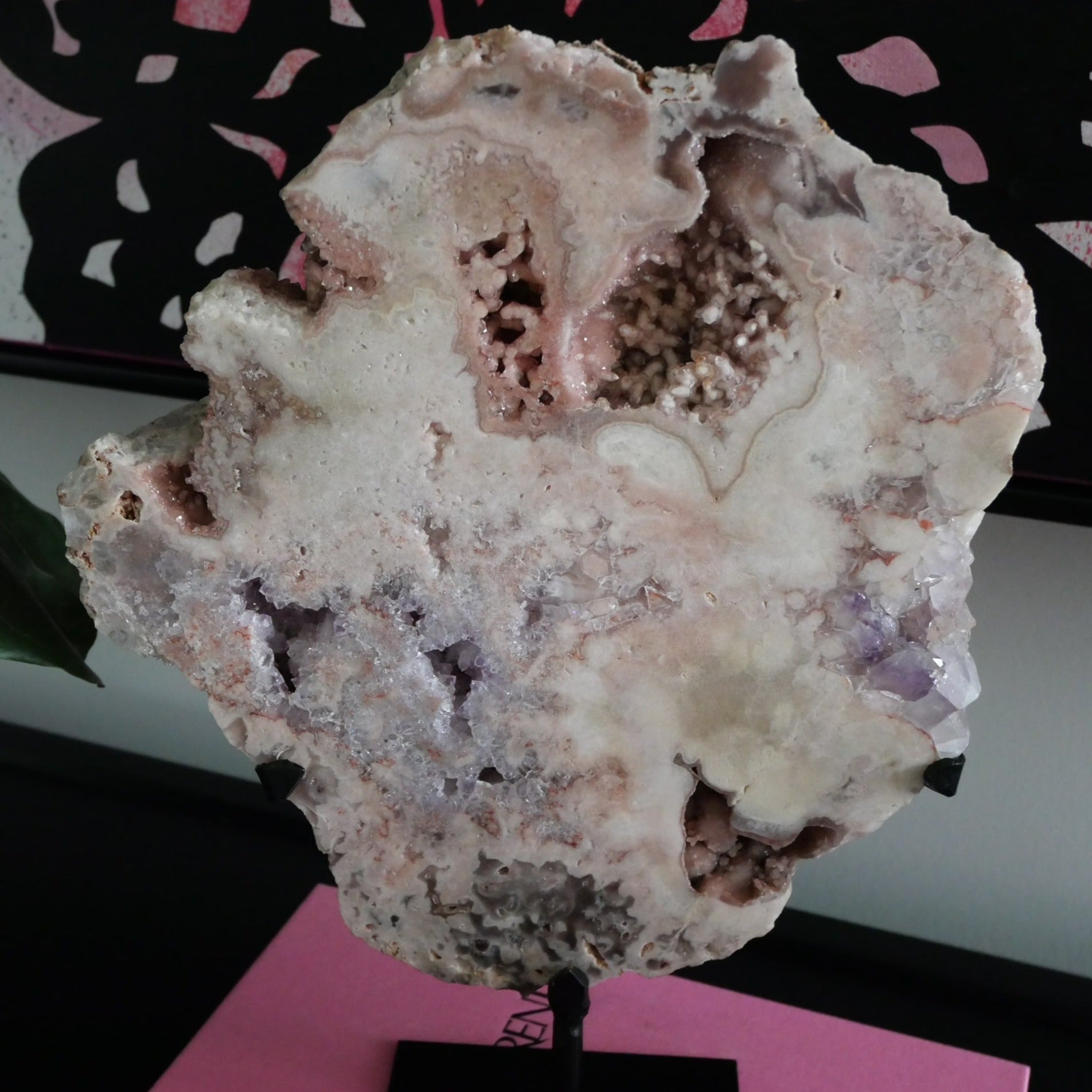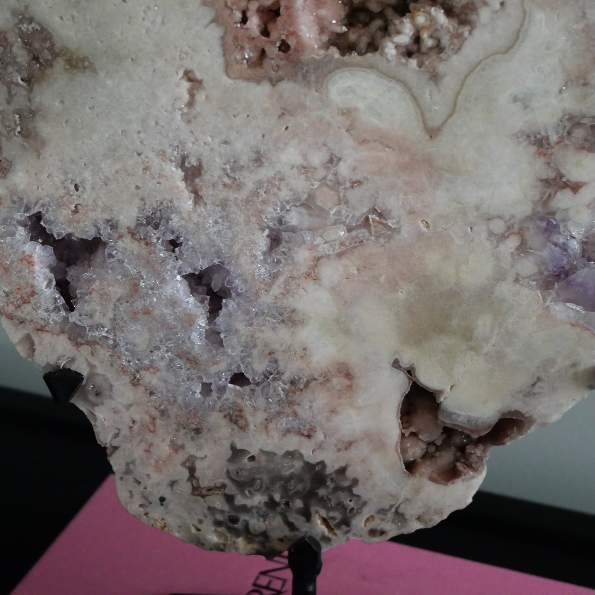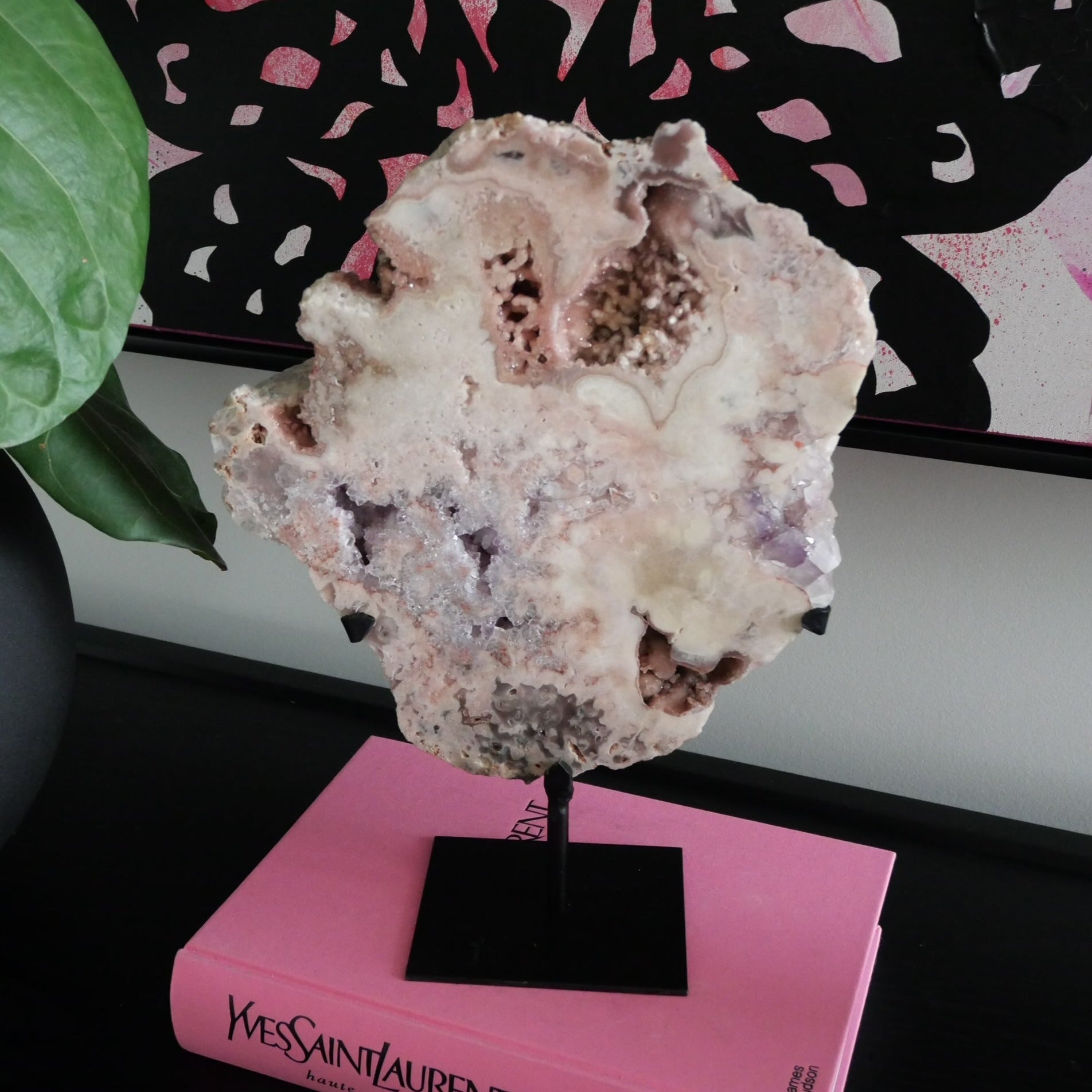 How stunning are these gorgeous Pink Amethyst Slabs on a Stand. They are a High Grade Pink Amethyst, meaning lots of druzy pockets and sparkle. They are an amazing showpiece for your home and such a Wow factor.