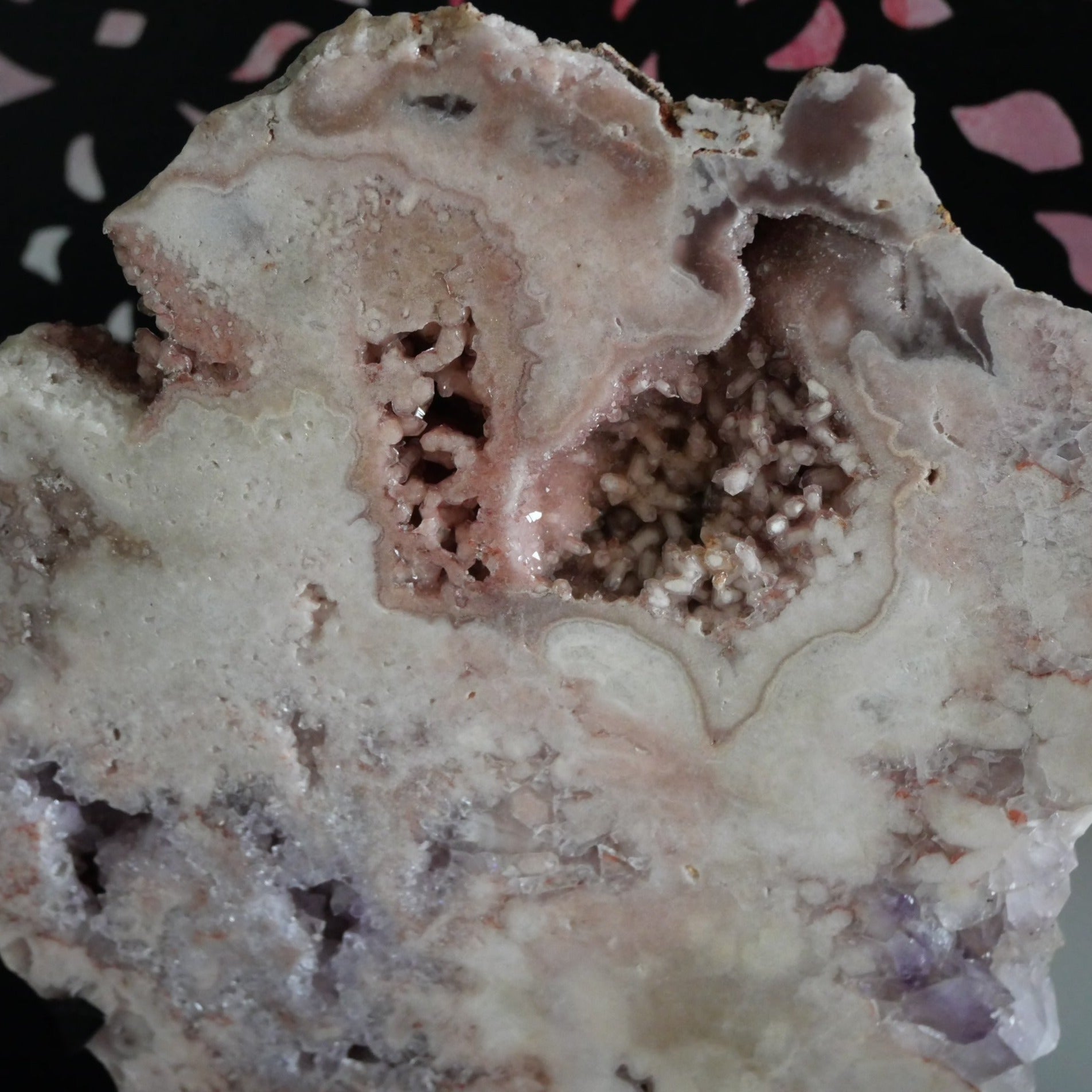 Pink Amethyst, like Amethyst is known to be calming, release stress and tension & brings harmony. Pink Amethyst is much more rare, it brings a balancing of physical, emotional and mental levels. Great stone for those experiencing grief, sadness and anxiety, heals both old and new trauma. Brings increased intuition and clarity and promotes a positive self image, body image, self esteem and self love and empowerment.