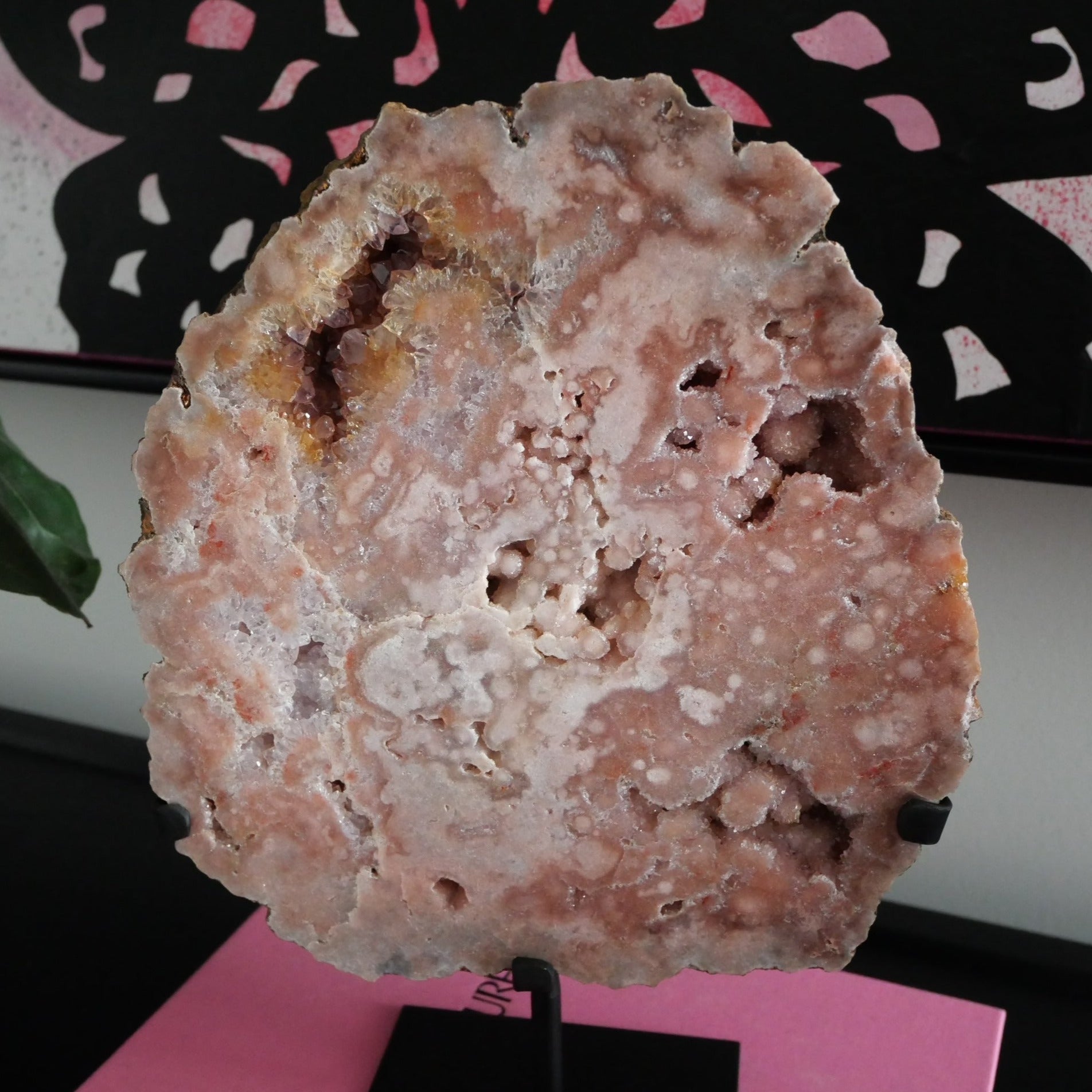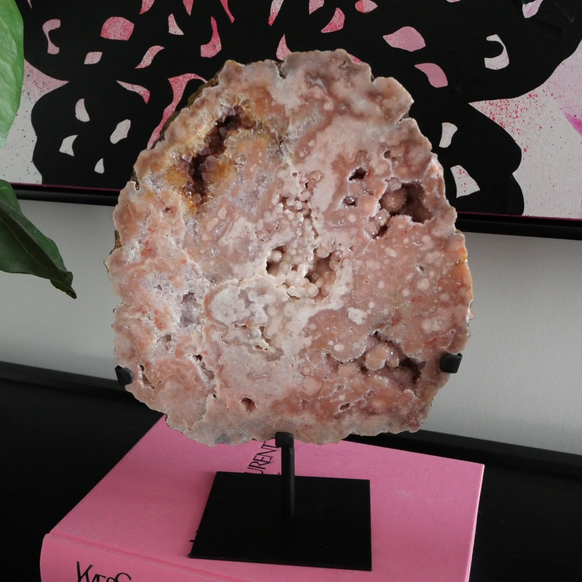 How stunning are these gorgeous Pink Amethyst Slabs on a Stand. They are a High Grade Pink Amethyst, meaning lots of druzy pockets and sparkle. They are an amazing showpiece for your home and such a Wow factor.