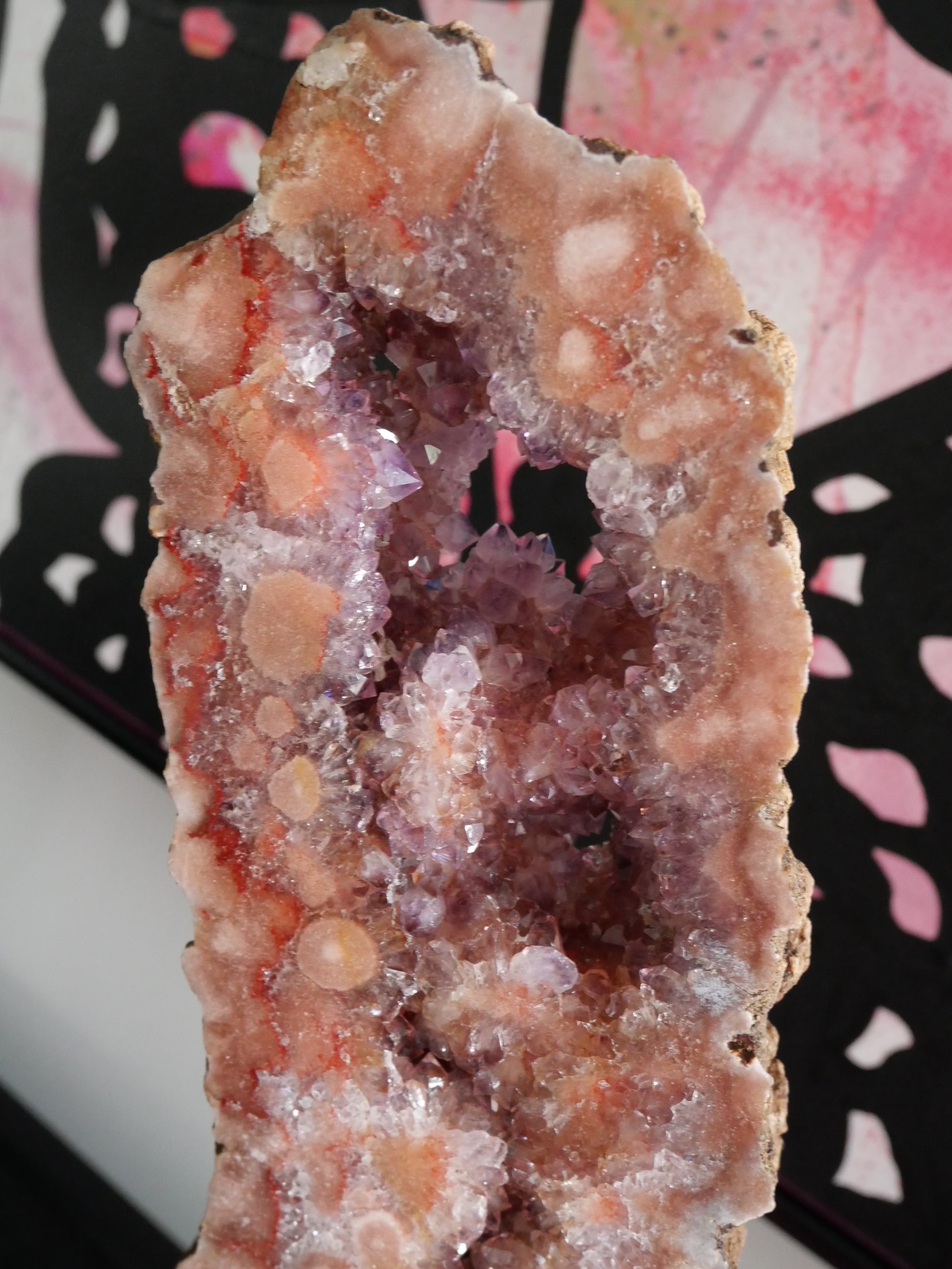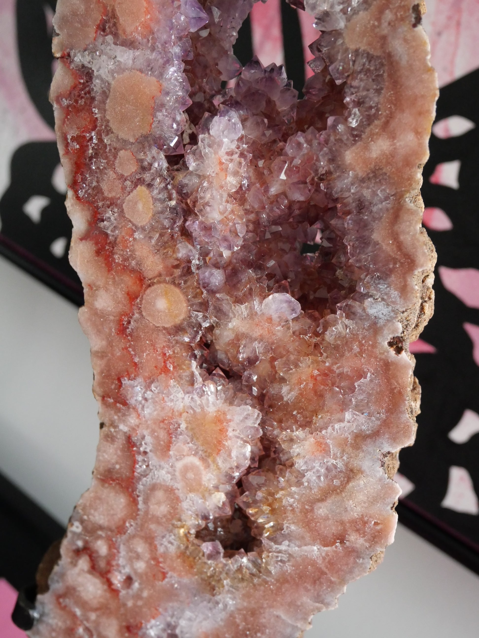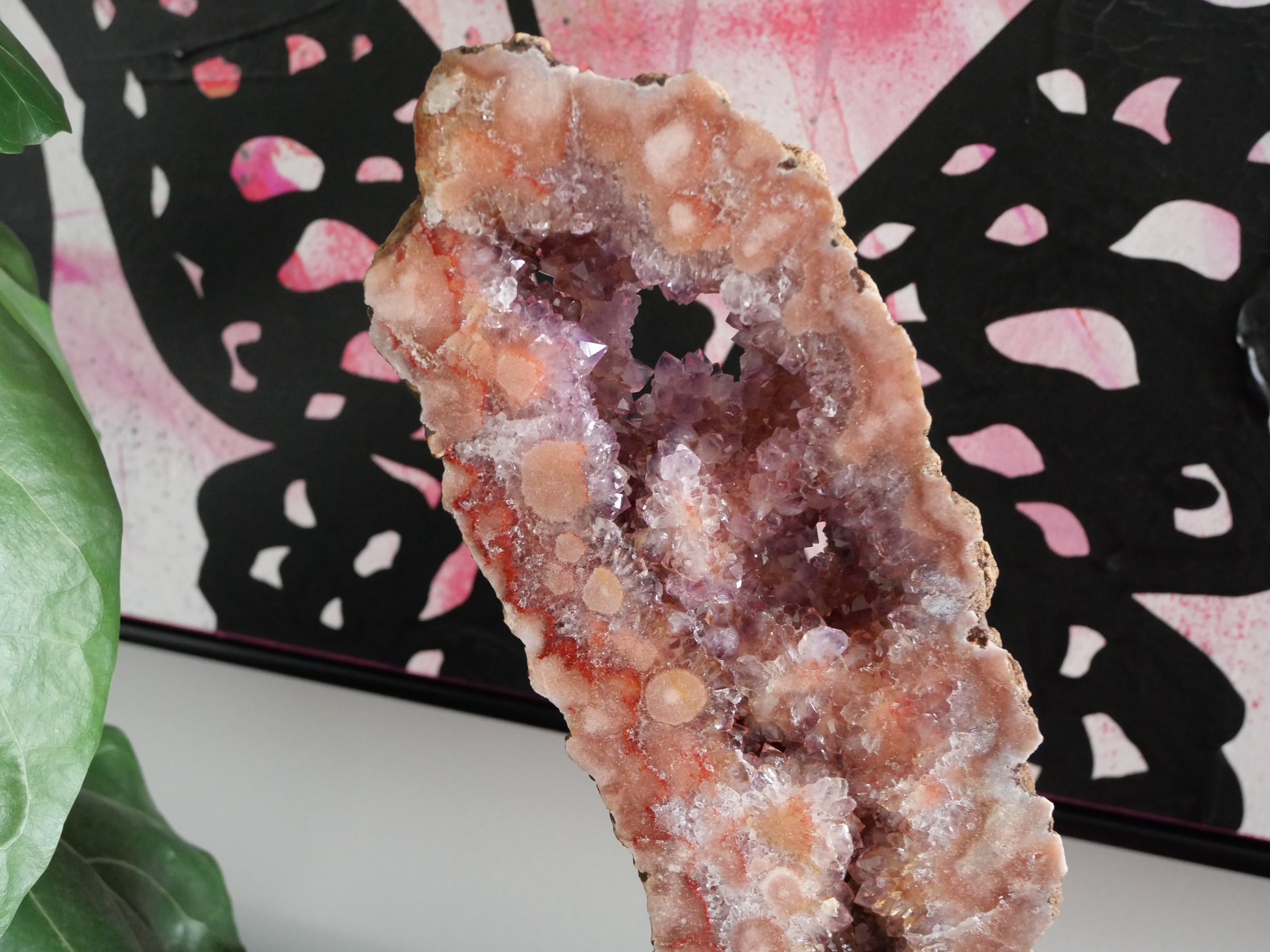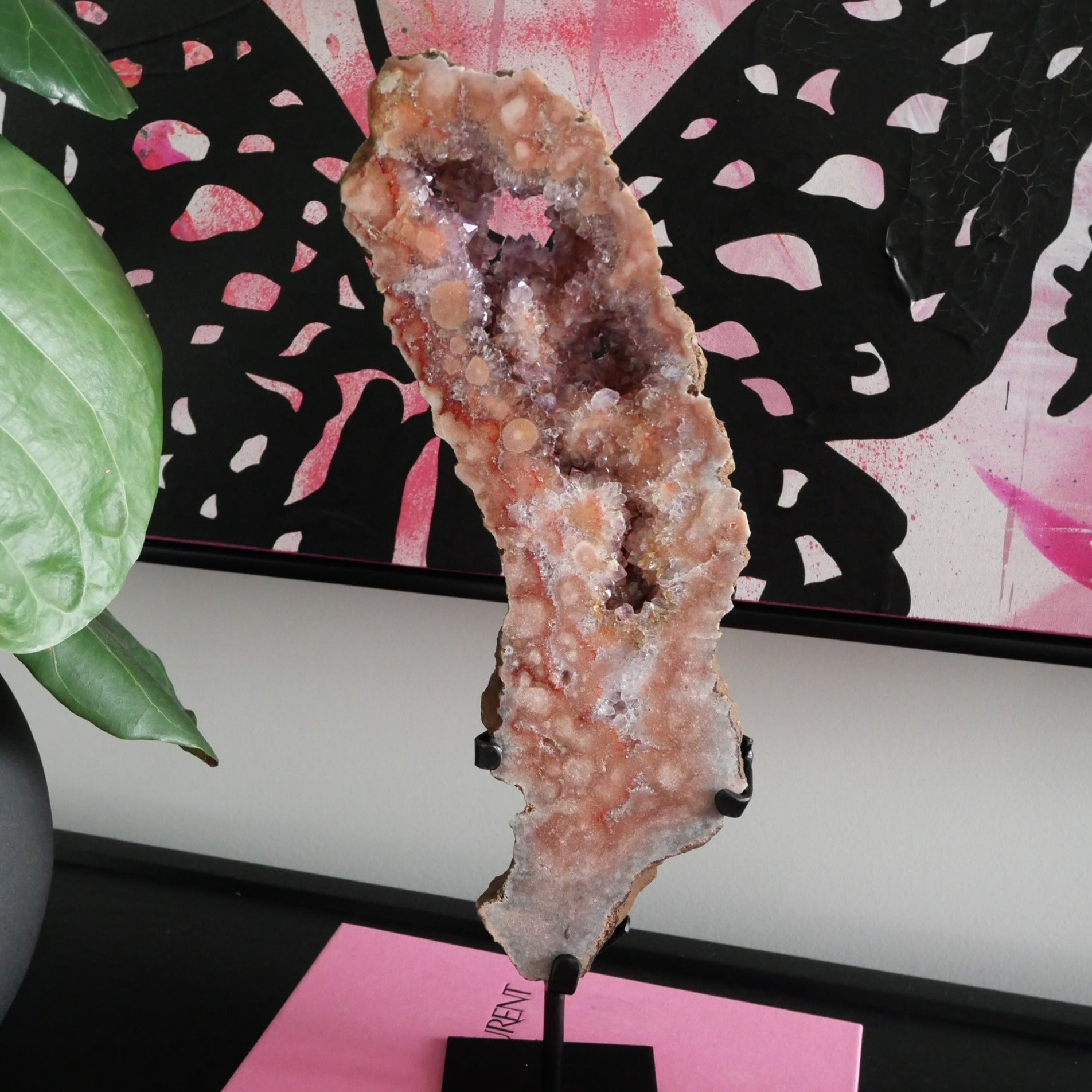 How stunning are these gorgeous Pink Amethyst Slabs on a Stand. They are a High Grade Pink Amethyst, meaning lots of druzy pockets and sparkle. They are an amazing showpiece for your home and such a Wow factor.
