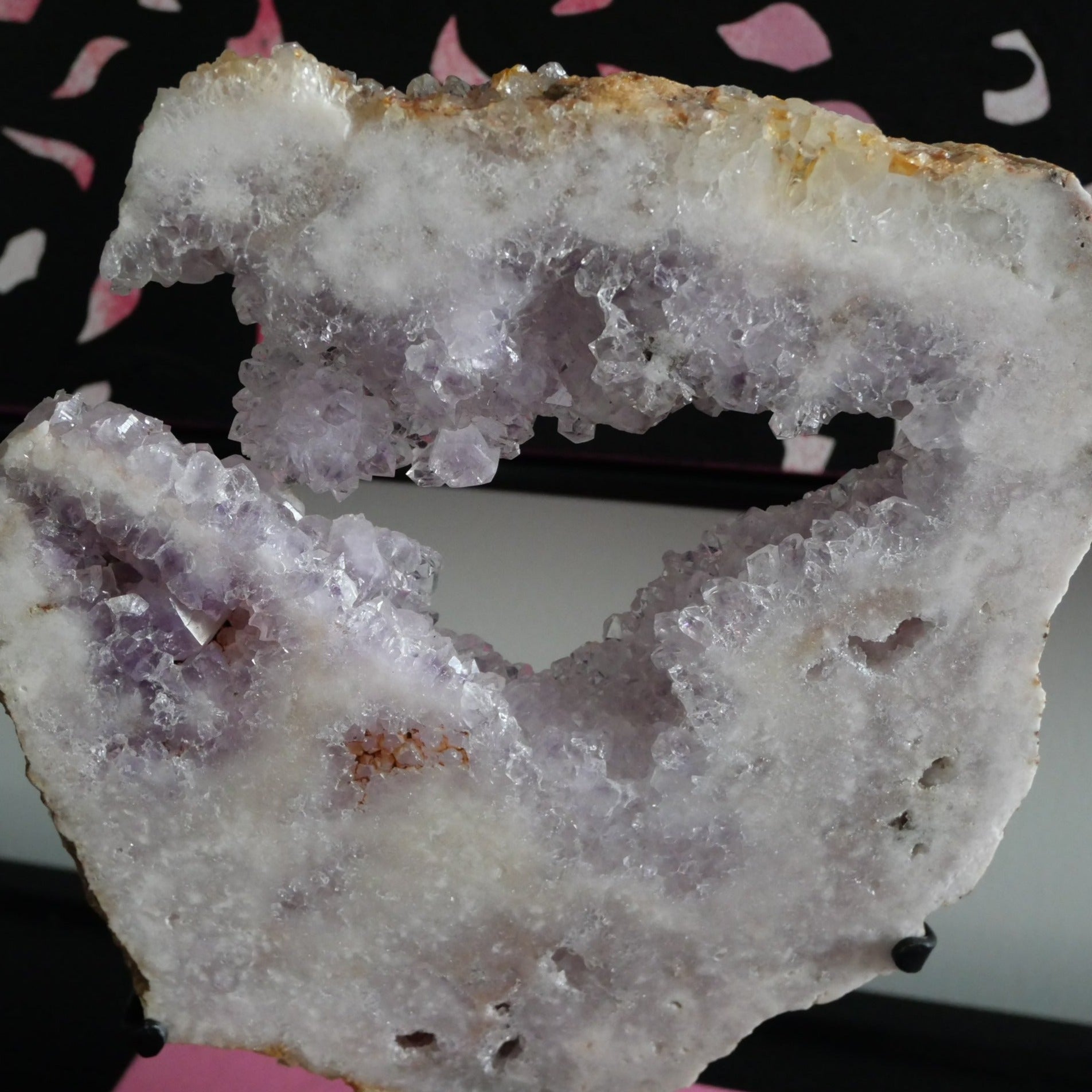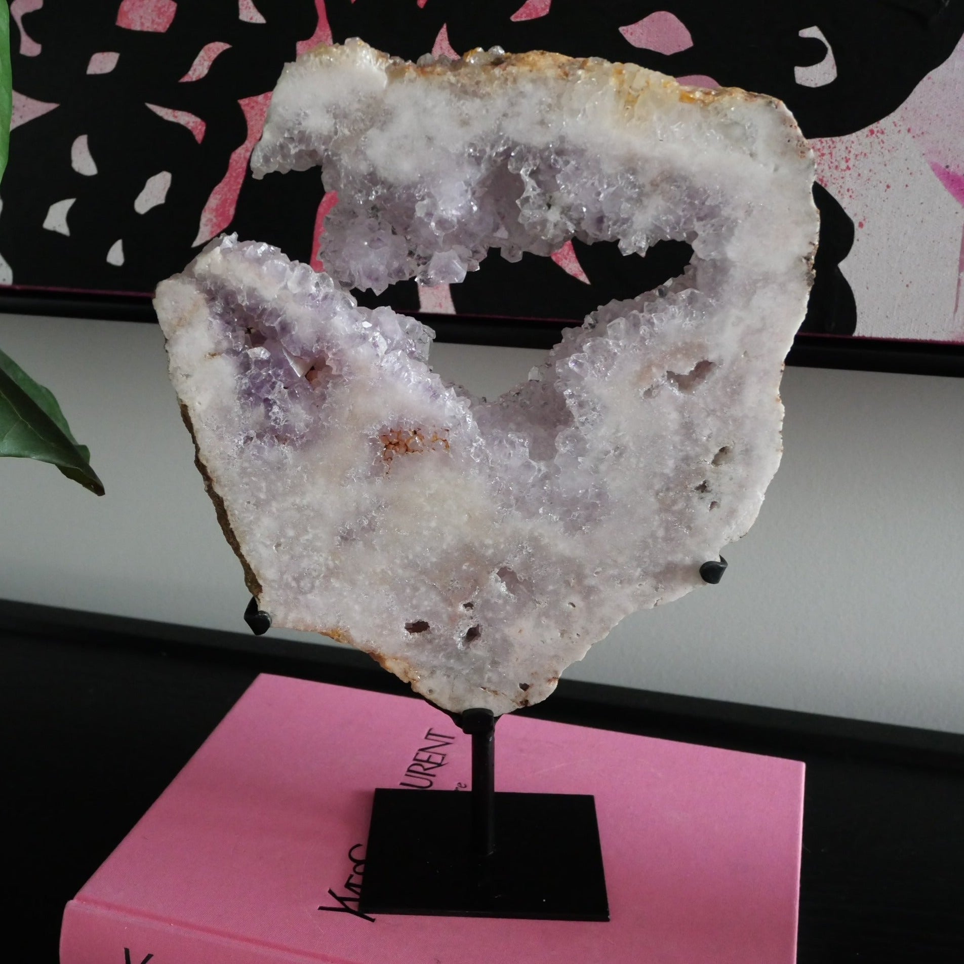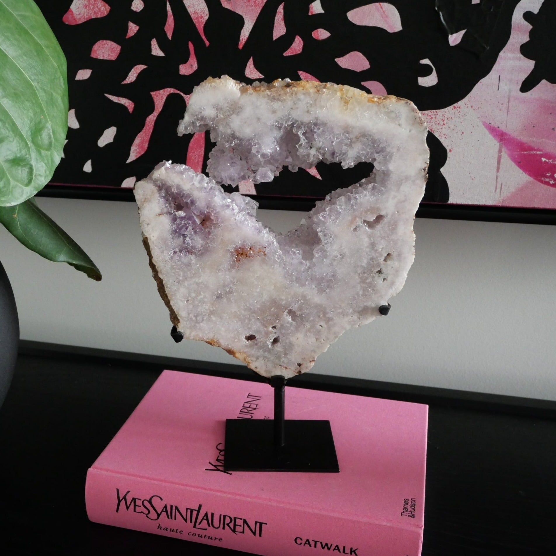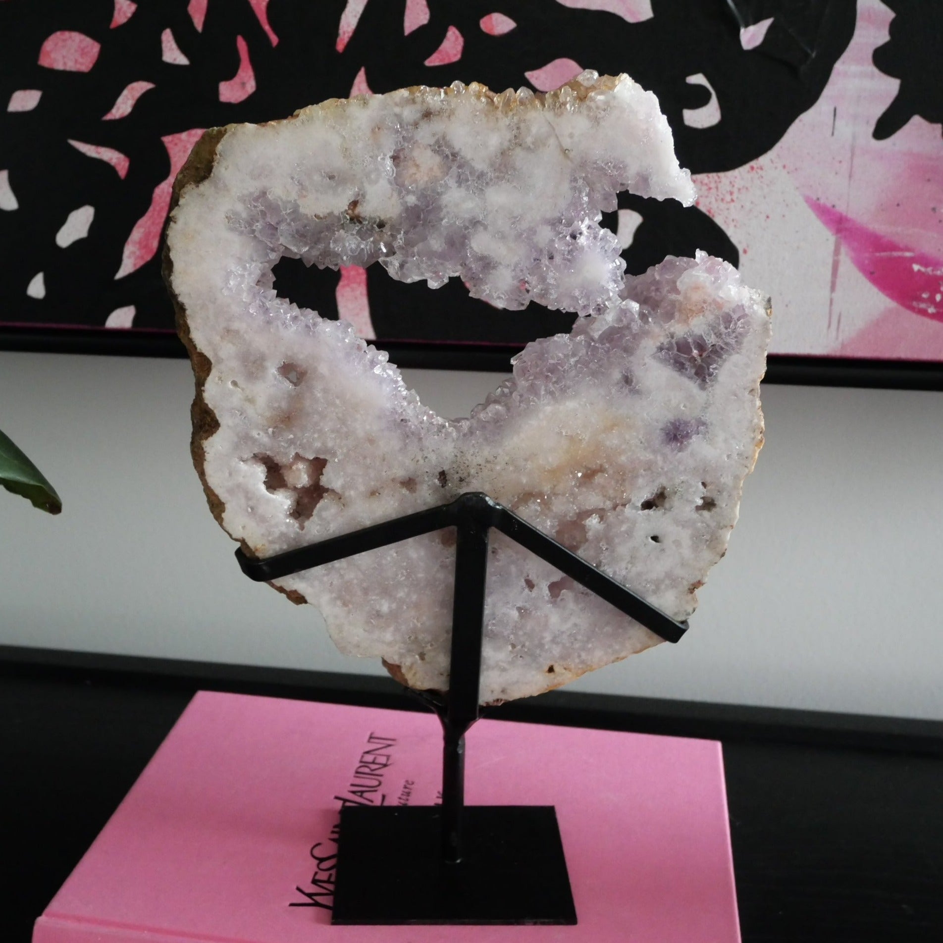 How stunning are these gorgeous Pink Amethyst Slabs on a Stand. They are a High Grade Pink Amethyst, meaning lots of druzy pockets and sparkle. They are an amazing showpiece for your home and such a Wow factor.