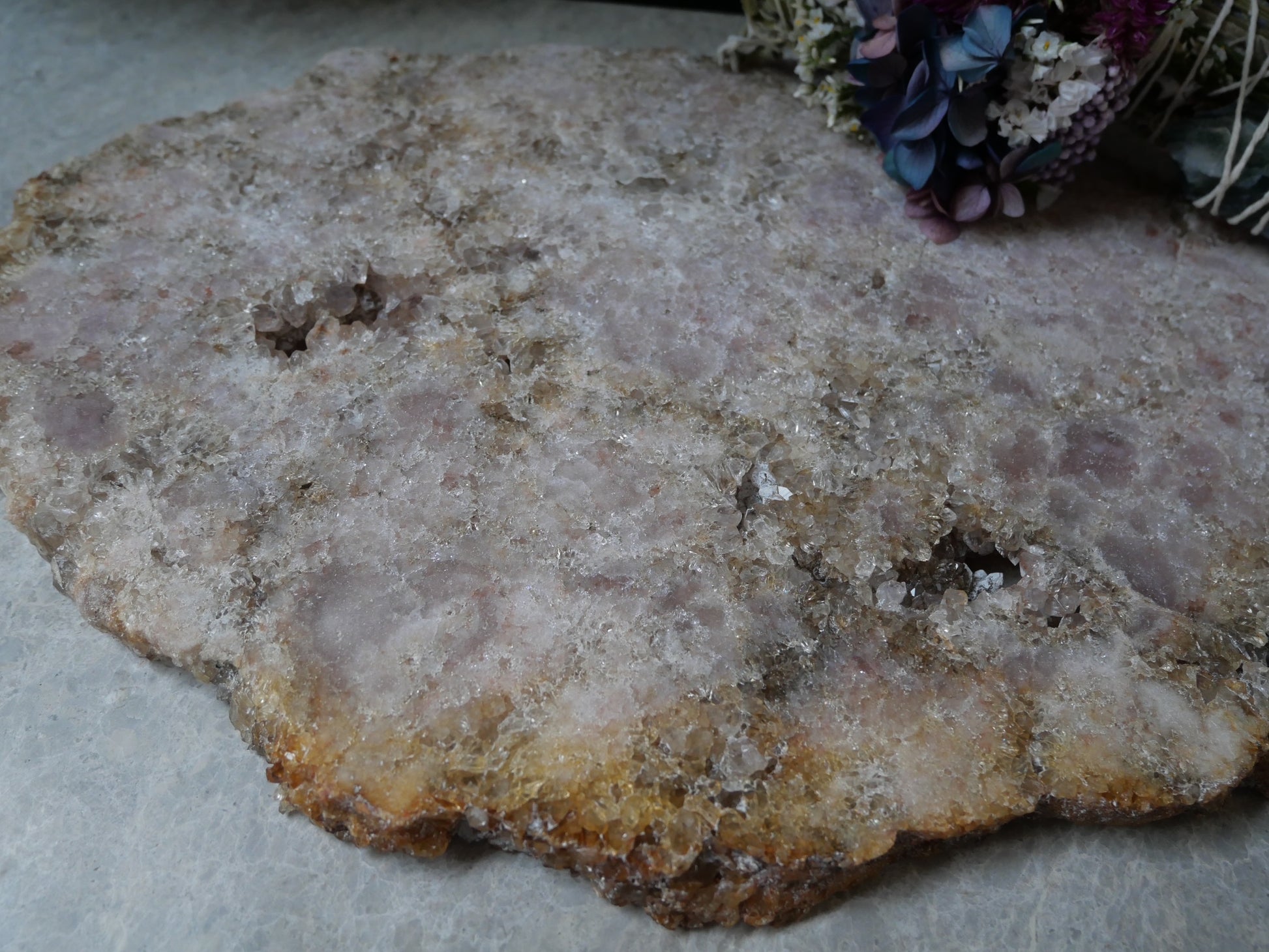 How stunning are these gorgeous Pink Amethyst Slabs. Such a Wow factor to add to your home. Use it to display a candle, crystals or however your heart desires.