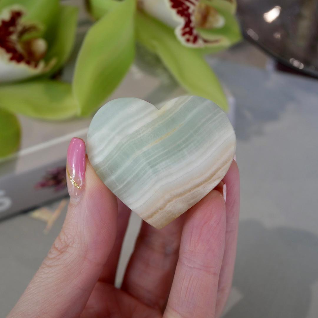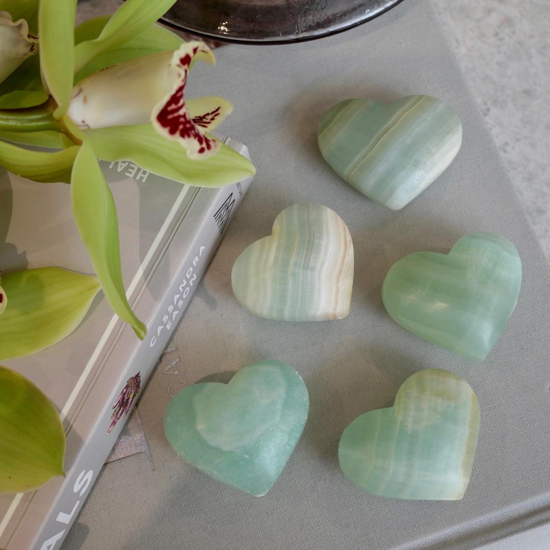 These gorgeous Hearts are so sweet and carved to perfection. Also referred to as Green Calcite.