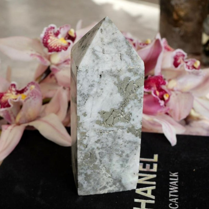 Pyrite in Quartz has properties that will protect us from negative energy from our surroundings. It is recommended for those who want to prevent maliciousness from people. Being such a powerful protection stone, the inclusion of quartz intensifies these energies. It will provide courage and confidence and prevent you from having negative thoughts. It will increase your motivation, ambition and also known to enhance memory.
