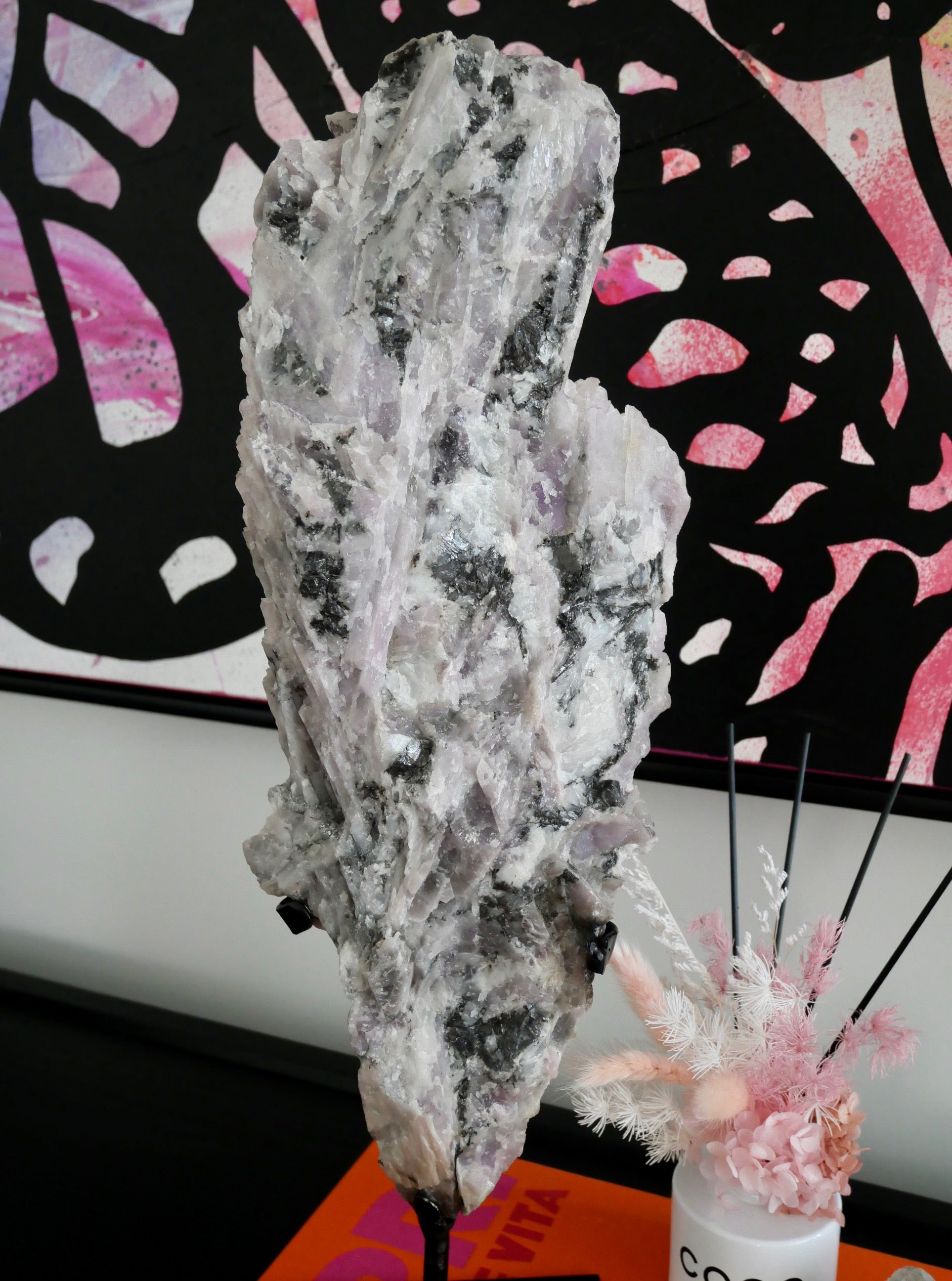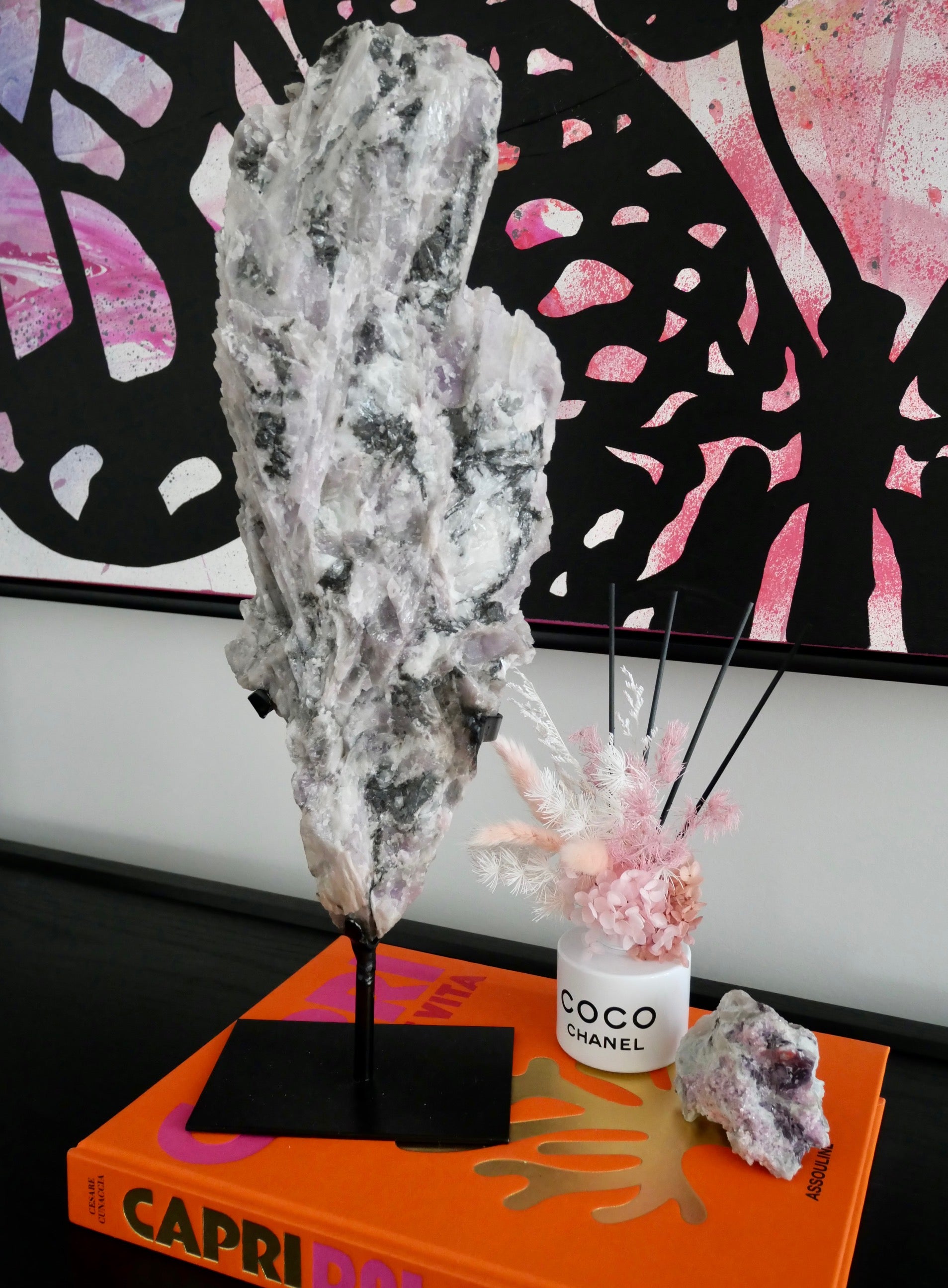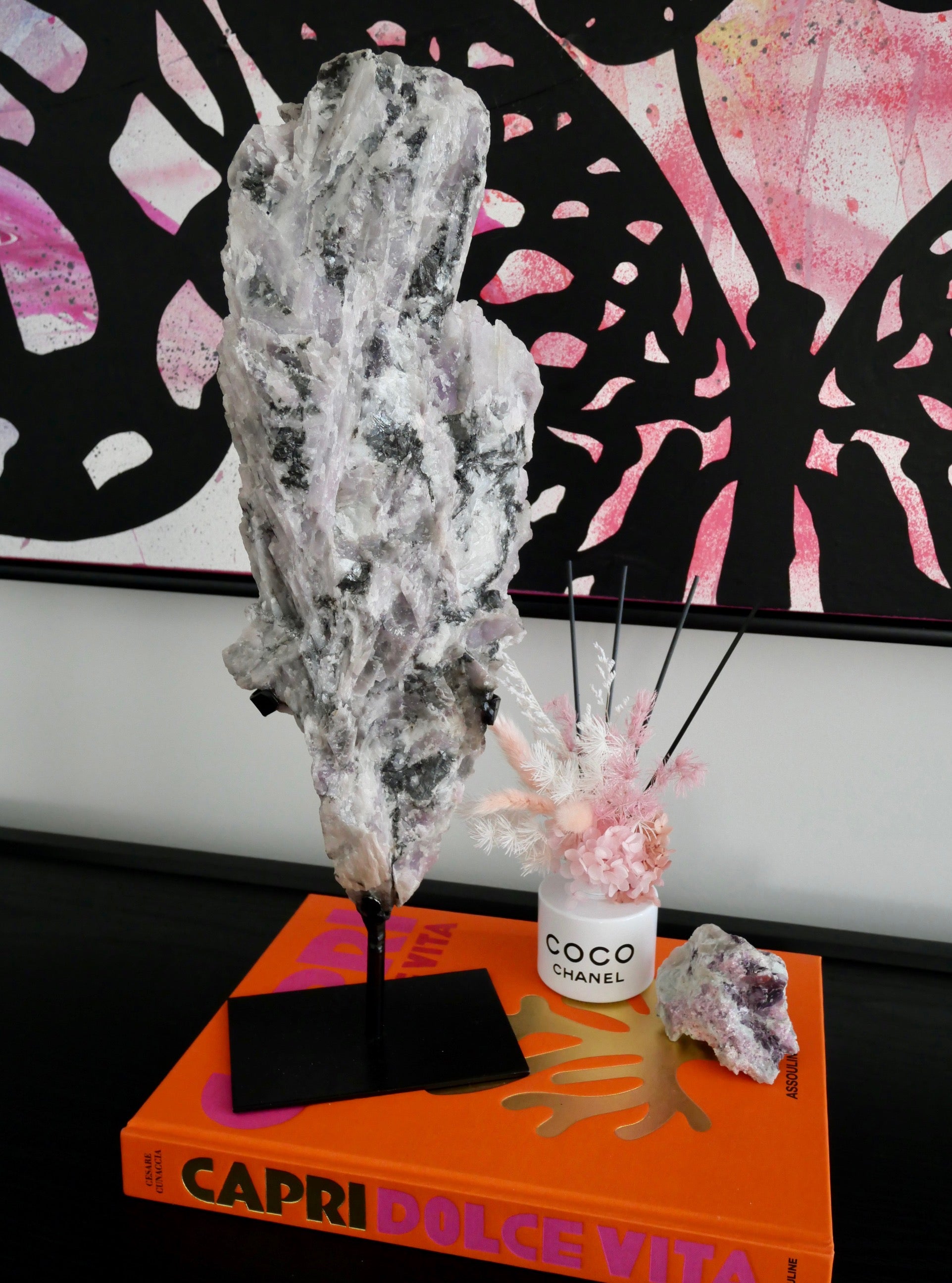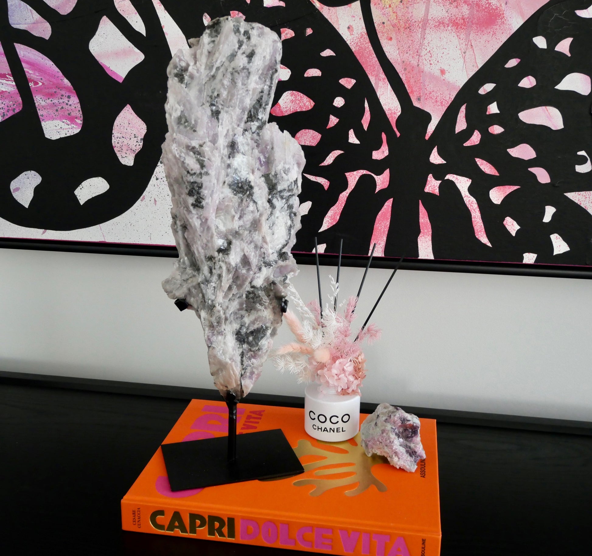 Please note, with all natural stone there may be imperfections within your crystal. It may have fracture crack, small caves or holes. These are merely the beauty of the crystal. Crystals are perfectly imperfect, all unique in their own way. No two crystals will ever be the same. You will receive the exact raw Kunzite on the stand as pictured. The Kunzite can be removed from the stand if you prefer to style it without the stand.