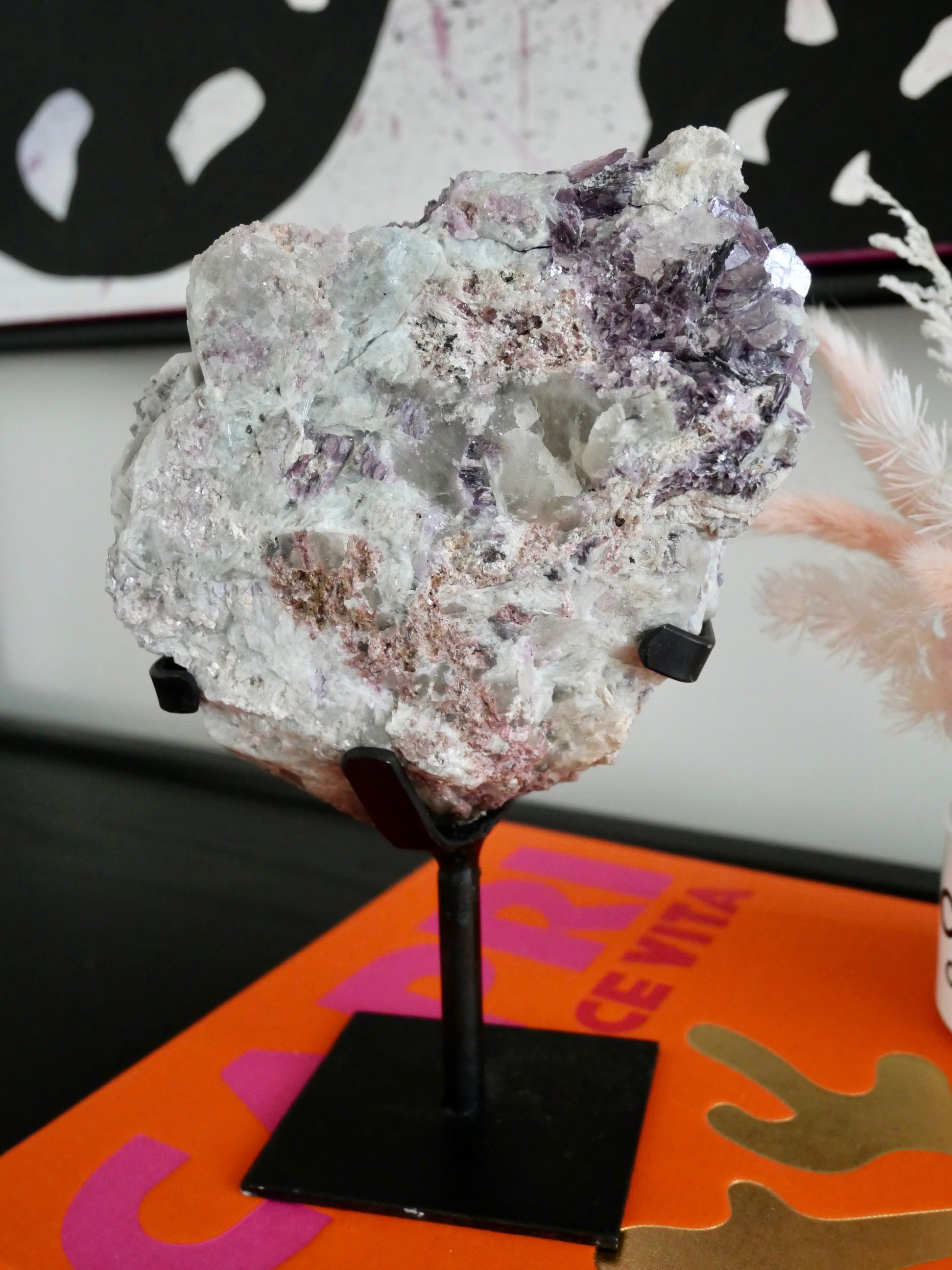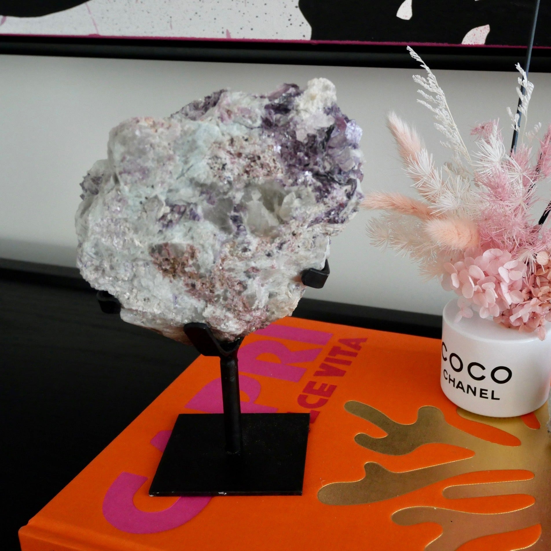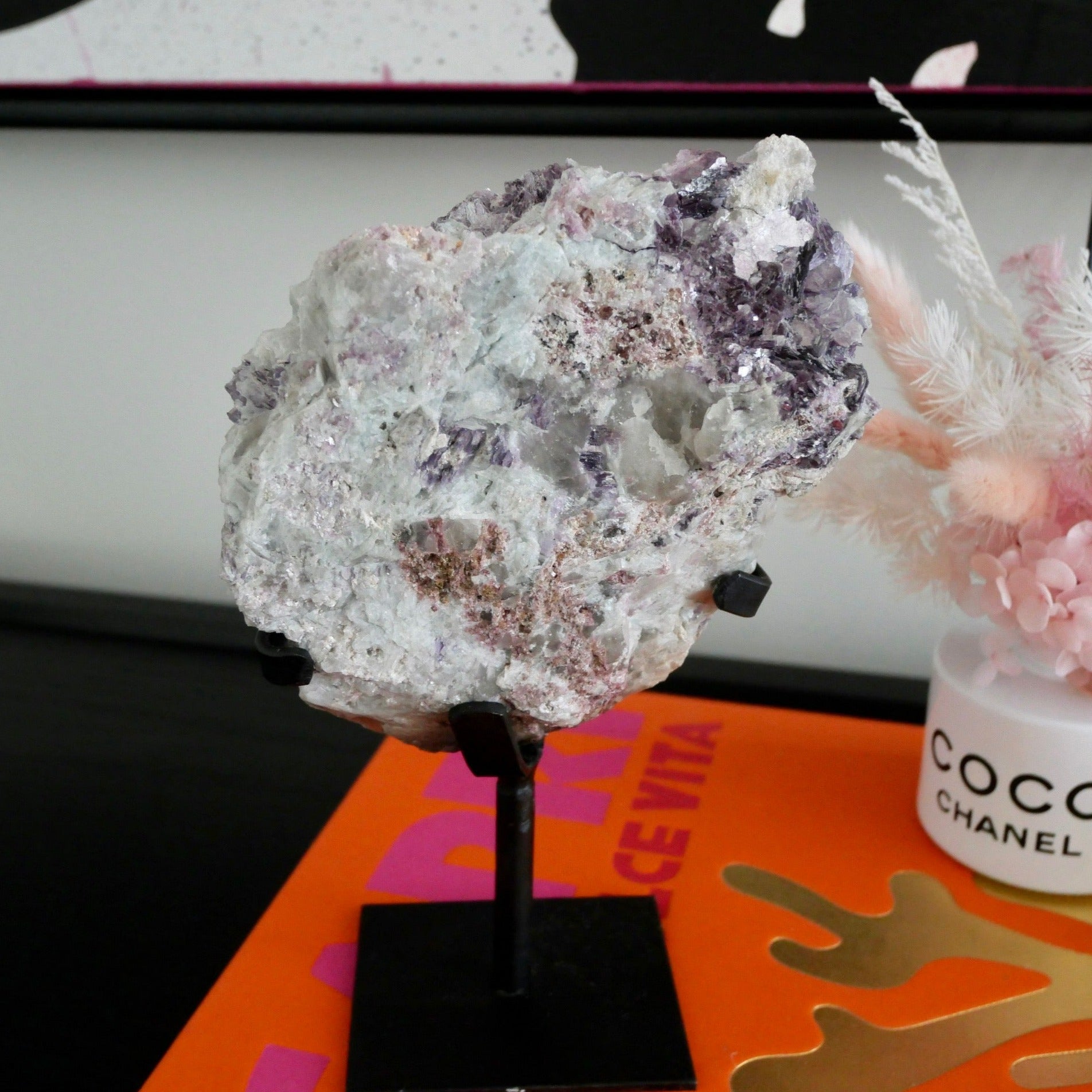 Please note, with all natural stone there may be imperfections within your crystal. It may have fracture crack, small caves or holes. These are merely the beauty of the crystal. Crystals are perfectly imperfect, all unique in their own way. No two crystals will ever be the same. You will receive the exact raw Lepidolite on the stand as pictured. The raw Lepidolite can be removed from the stand if you prefer to style it without the stand.