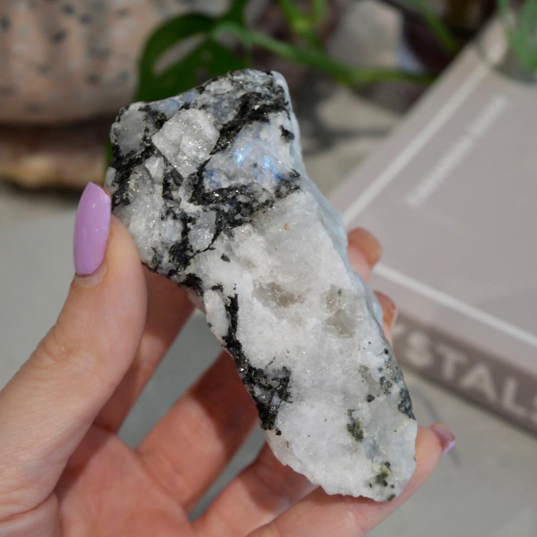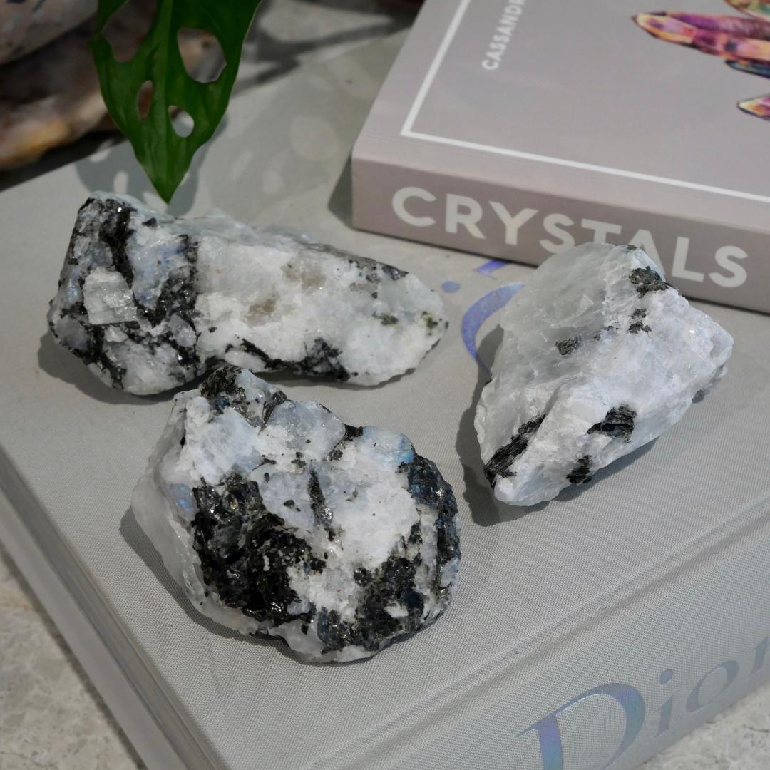 Please note, with all natural stone there may be imperfections within your crystal. It may have fracture cracks, small caves or holes. These are merely the beauty of the crystal. Crystals are perfectly imperfect, all unique in their own way. No two crystals will ever be the same. This listing is for one piece of Rainbow Moonstone. Picture is merely for reference of quality and sizing. Your Raw Rainbow Moonstone will be chosen intuitively for you.