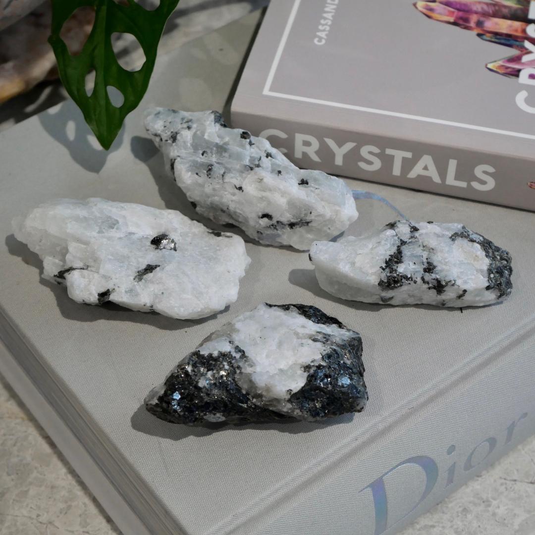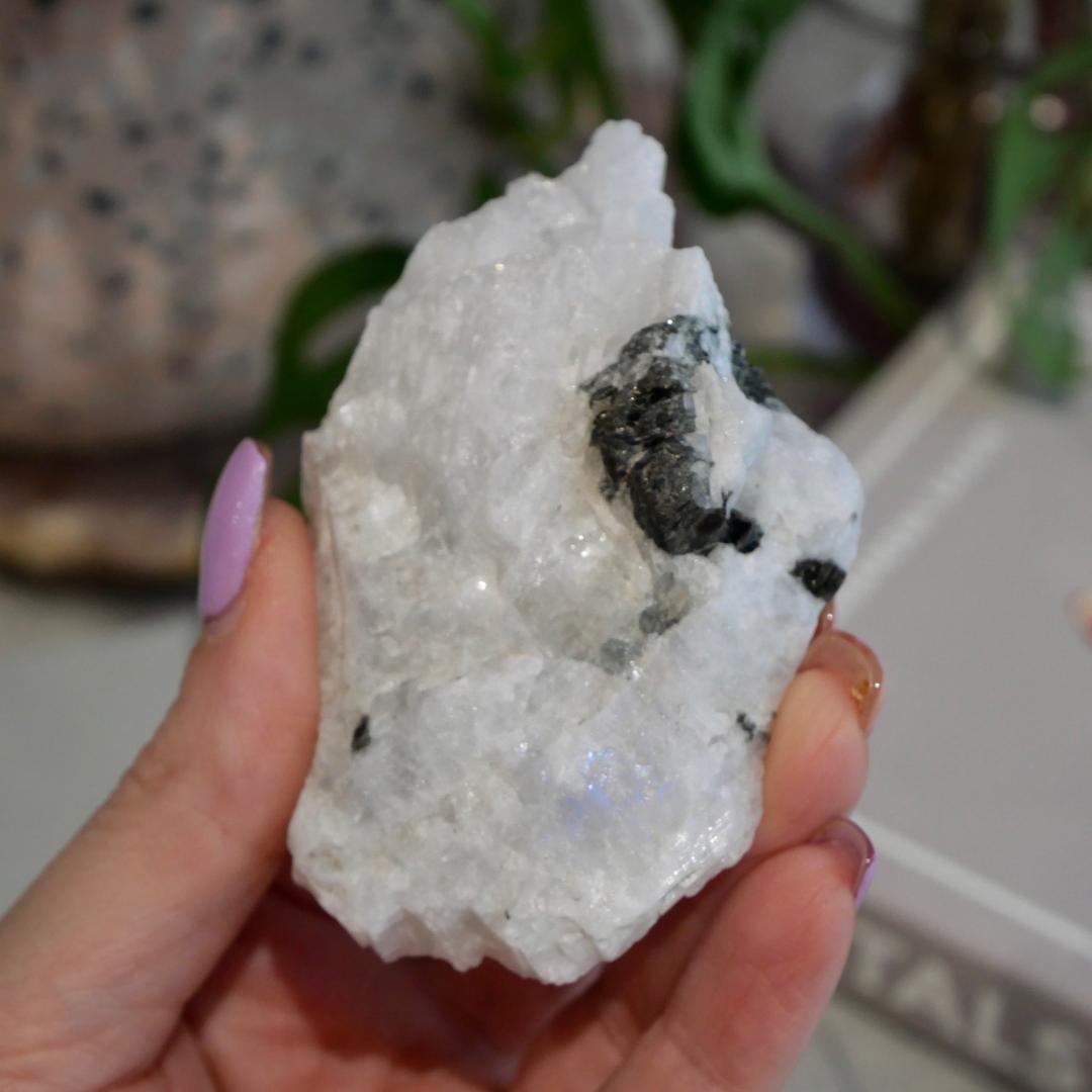 Please note, with all natural stone there may be imperfections within your crystal. It may have fracture cracks, small caves or holes. These are merely the beauty of the crystal. Crystals are perfectly imperfect, all unique in their own way. No two crystals will ever be the same. This listing is for one piece of Rainbow Moonstone. Picture is merely for reference of quality and sizing. Your Raw Rainbow Moonstone will be chosen intuitively for you.