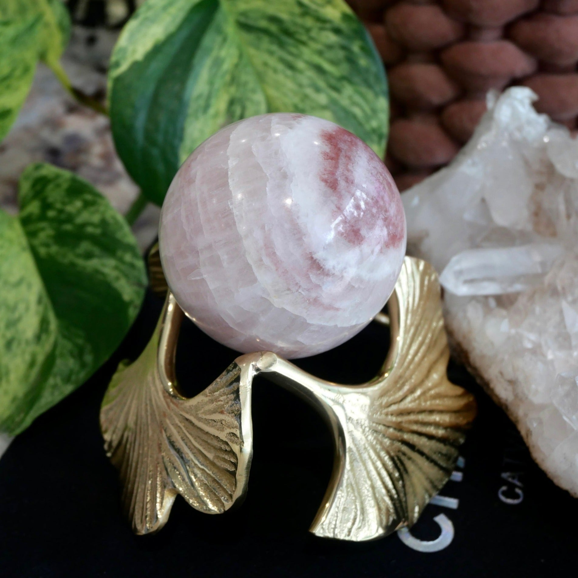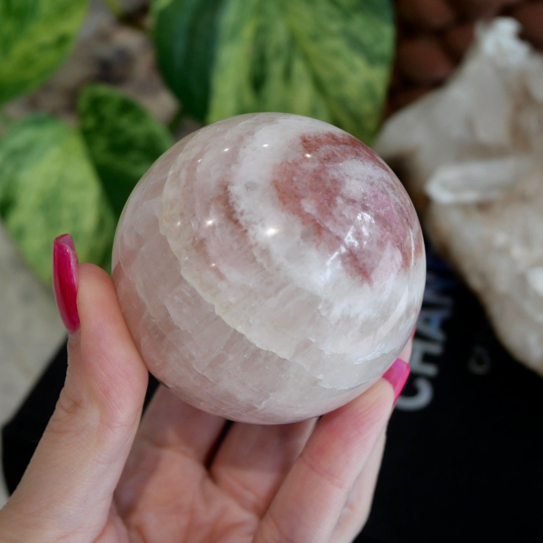 This high quality Rose Calcite Sphere has the most stunning Blush hues & is such a rare find.