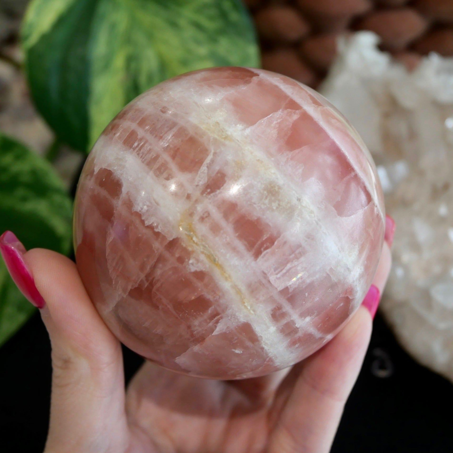 This high quality Rose Calcite Sphere has the most stunning Blush hues & is such a rare find.